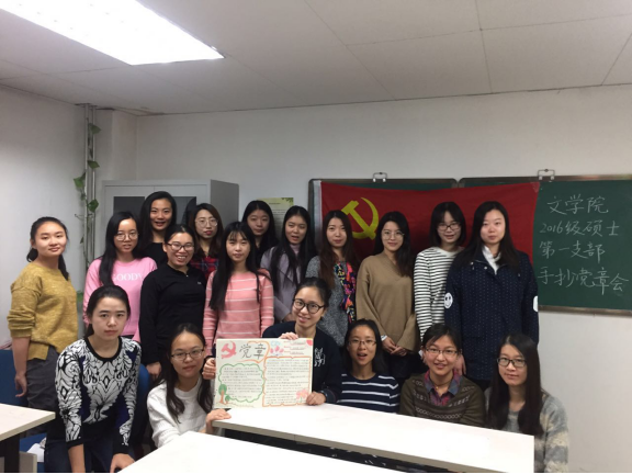 2016 级硕士第一党支部为了更好地贯彻落实“两学一做”,开展了创意“手抄党章”的活动,旨在让支部党员们对党章有更深刻的认识和理解。党员们在抄写党章的同时,也有很深的体会和感悟。支部委员刘星谷同志写到:“在学习这一部分党章时,我想到了毛主席在《星星之火,可以燎原》中的一段话:‘我所说的中国革命高潮……是站在海岸遥望海中已经看得见桅杆尖头的一只航船,它是立于高山之巅远看东方已见光芒四射、喷薄欲出的一轮朝日,它是躁动于母腹中快要成熟了的一个婴儿。’在新时代,中国共产党依然面临重大的挑战和改革的艰难,却仍以无比坚定的信念凝聚共识与力量,带领着全国各族人民一步步实现中华民族伟大复兴的梦想。”