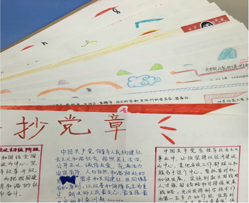 2016 级硕士第一党支部开展了创意“手抄党章”的活动。支部党员们纷纷积极参加活动,每人分工抄写党章并写下感悟,最终以手抄报的形式集结成册,活动也圆满落下帷幕。