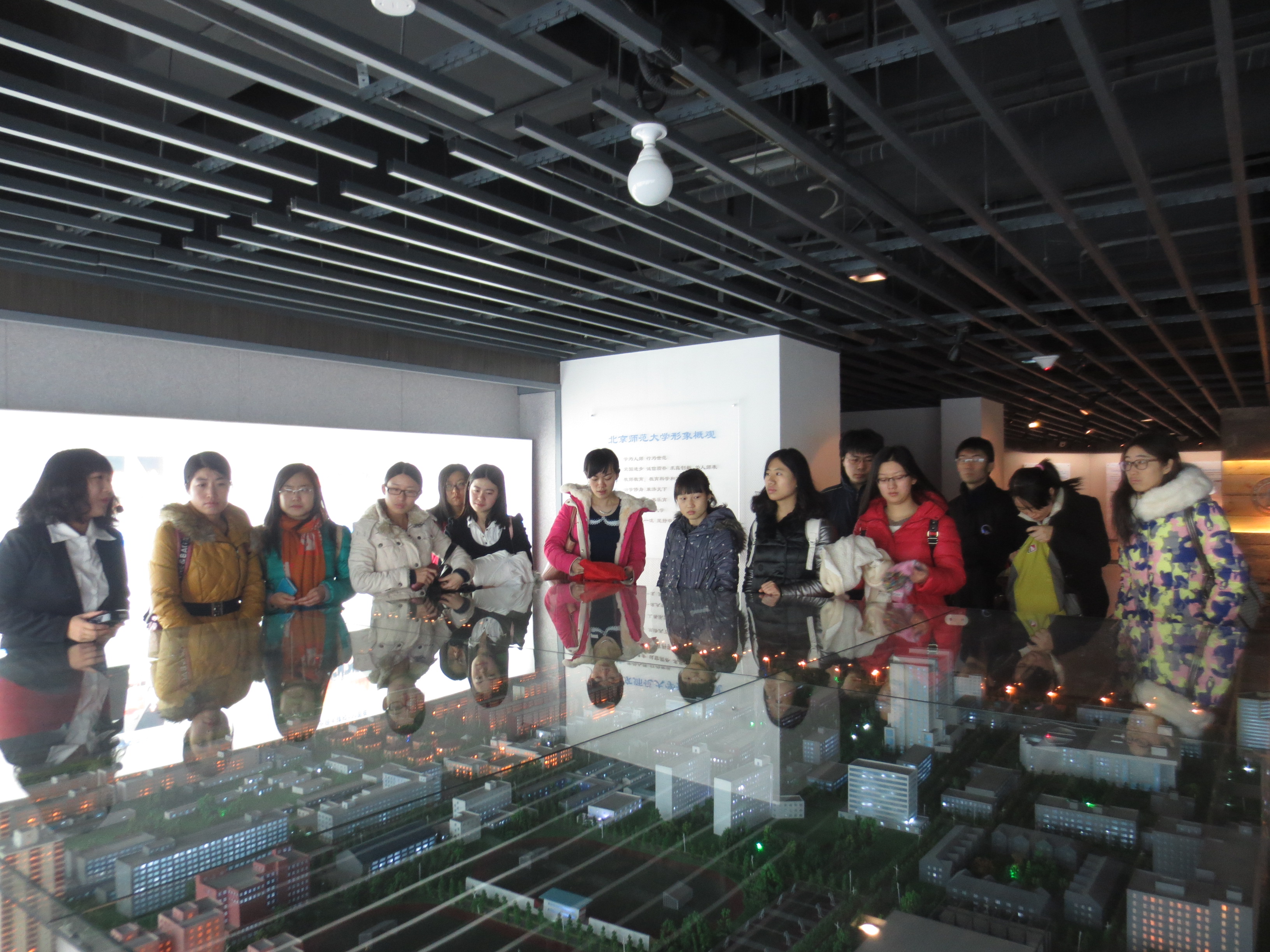 入党积极分子第12组小组成员与国民核算学院的积极分子共同参观了我校的形象展览馆。在近一个小时的参观中,来自两个院系六个支部的十七名入党积极分子们,通过参观沙盘区、校史厅、流动展廊、特色厅、名师厅和启功厅,不仅了解了北师大的百年建设及发展历程,更加体会到了北师大独特的人文精神。积极分子们纷纷表示,参加这样的活动收获良多,在激发爱校爱国精神的同时,也真切地提升了他们的学子自豪感和对社会的责任承载感。