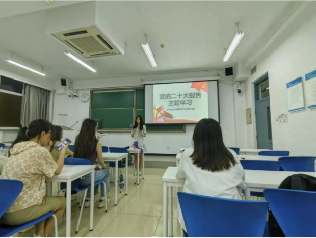 此外,学员们还以小组为单位开展了内容丰富、形式多样的主题活动,如组织“只有扎根泥土,才能懂得人民”黄文秀精神专题学习会,《焦裕禄》《1921》红色观影会,学唱《我和我的祖国》等经典红歌。学员们充分发挥主体性与能动性,既认真研读党的二十大报告,深入体会党中央对国家发展全局的深思熟虑与坚定决心。又从文艺作品中找寻红色记忆,在实践中巩固学习成果。