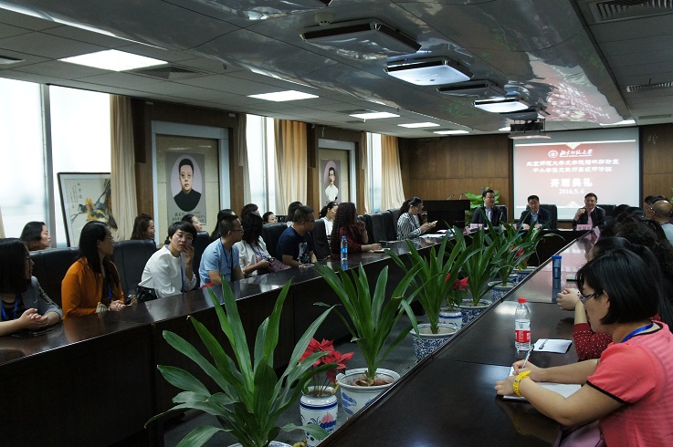 发展合作中心主任张国龙副教授发表致辞,向与会来宾与到场教师表达了最诚挚的欢迎与感谢。其后,北京市教委办公室副主任王力志发表讲话。王力志副主任通过自身经历讲述了内蒙古锡林郭勒盟地区的教育现状,并表明此次研修班是将北京教育资源与内蒙古教育资源共享、优化的典范,有助于均衡地区教育资源,优化内蒙古已有教育资源,为内蒙古教育事业做出一定的贡献。
