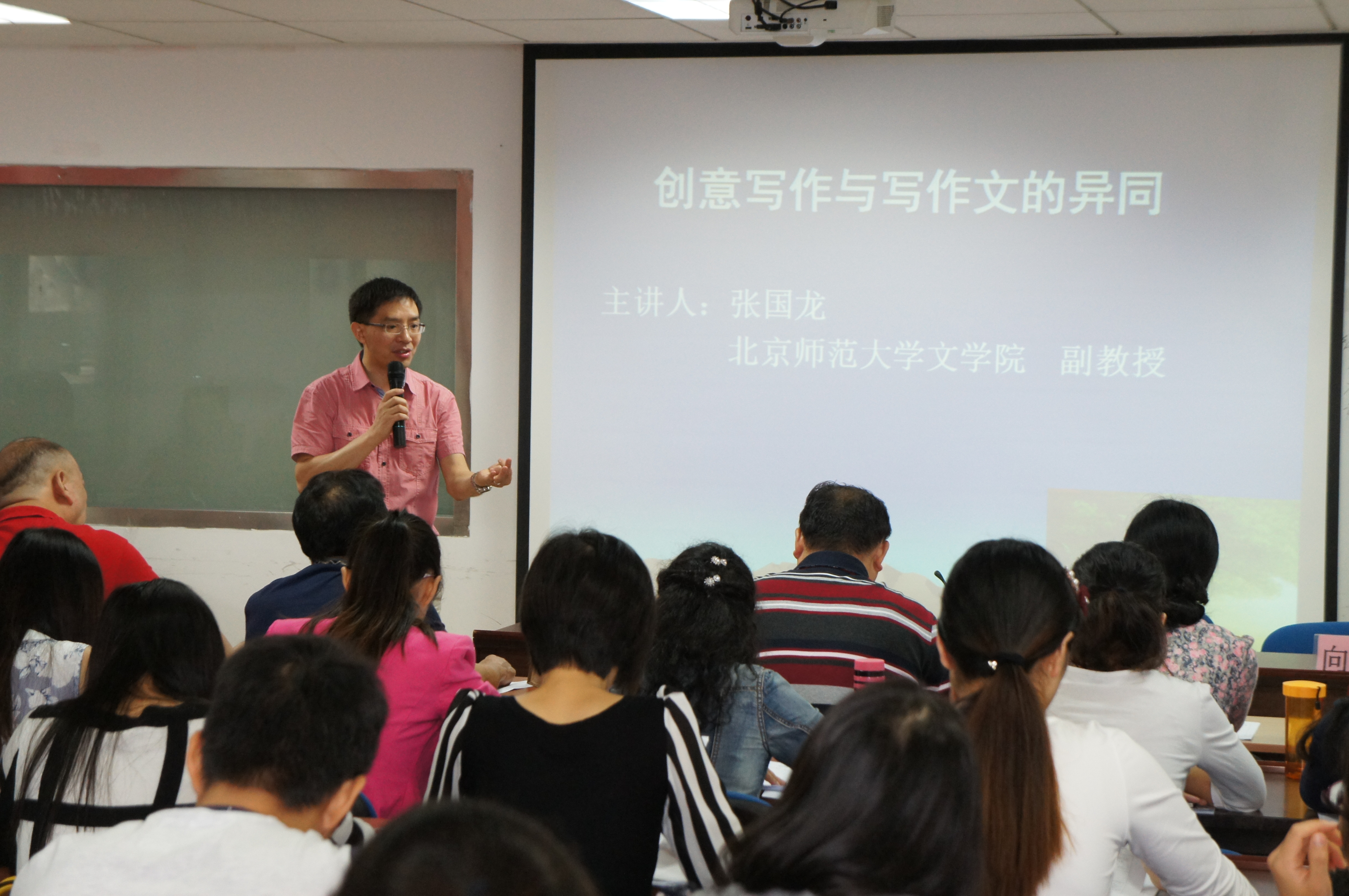 的光辉历史,历数师大历代文学大师,并对本次研讨会寄予了殷切的希望。张国龙主任希望他们能够充分利用这5天的时间,使本次培训对他们提高作文教学水平有更大的帮助,希望教师们将这五天的学习内容运用到以后的教学实践中,并祝愿他们今后成为更加优秀的语文教师。