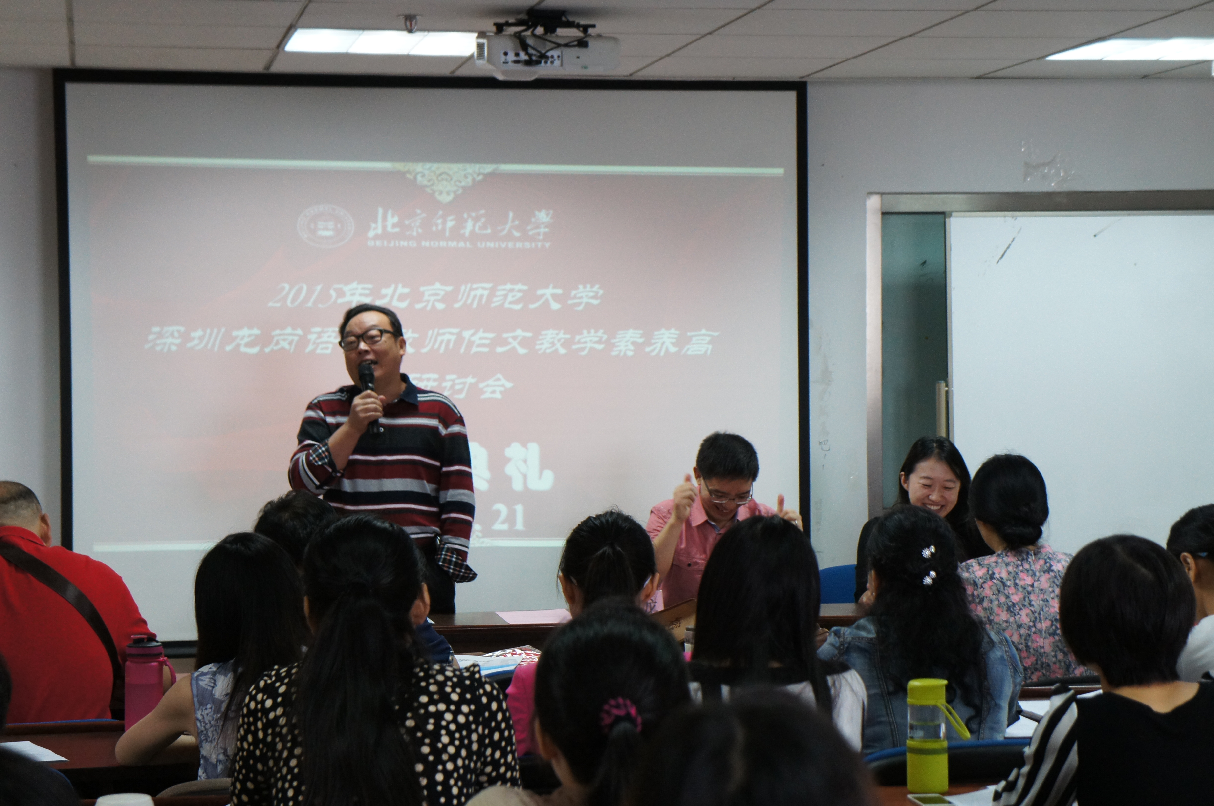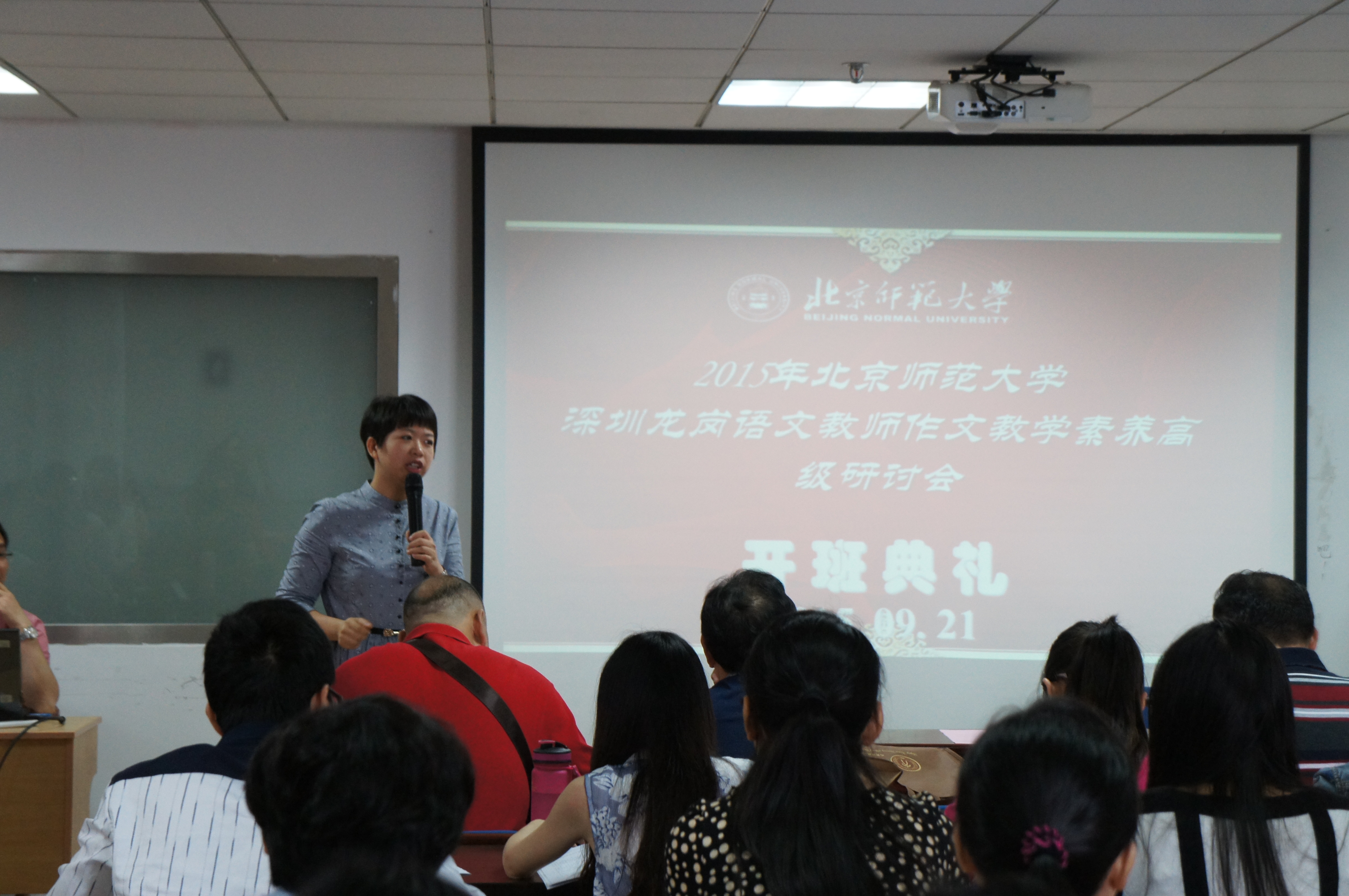 9月21日上午八点二十分,2015年深圳龙岗区语文教师作文教学素养高级研讨会开班仪式在北师大91制片
