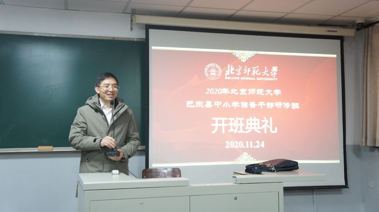 以及发展与合作中心提供的学习机会与平台表达了真诚的谢意。他在讲话中强调,在座各位老师是巴东教育的中流砥柱,大家参与本次培训可谓是任重而道远。因此,谭局长特别为老师们提出三点要求:一,珍惜机会,认真学习,把培训课程的精华引回巴东;二,遵守培训纪律,展现巴东风貌;三,注意出行安全,做好防疫工作。谭局长表示,近十年来北京市教委在针对巴东的对口支援方面做了很多努力,巴东也因此和北师大结下深厚友谊,希望这份友谊长存,也预祝各位老师在培训中有所收获。