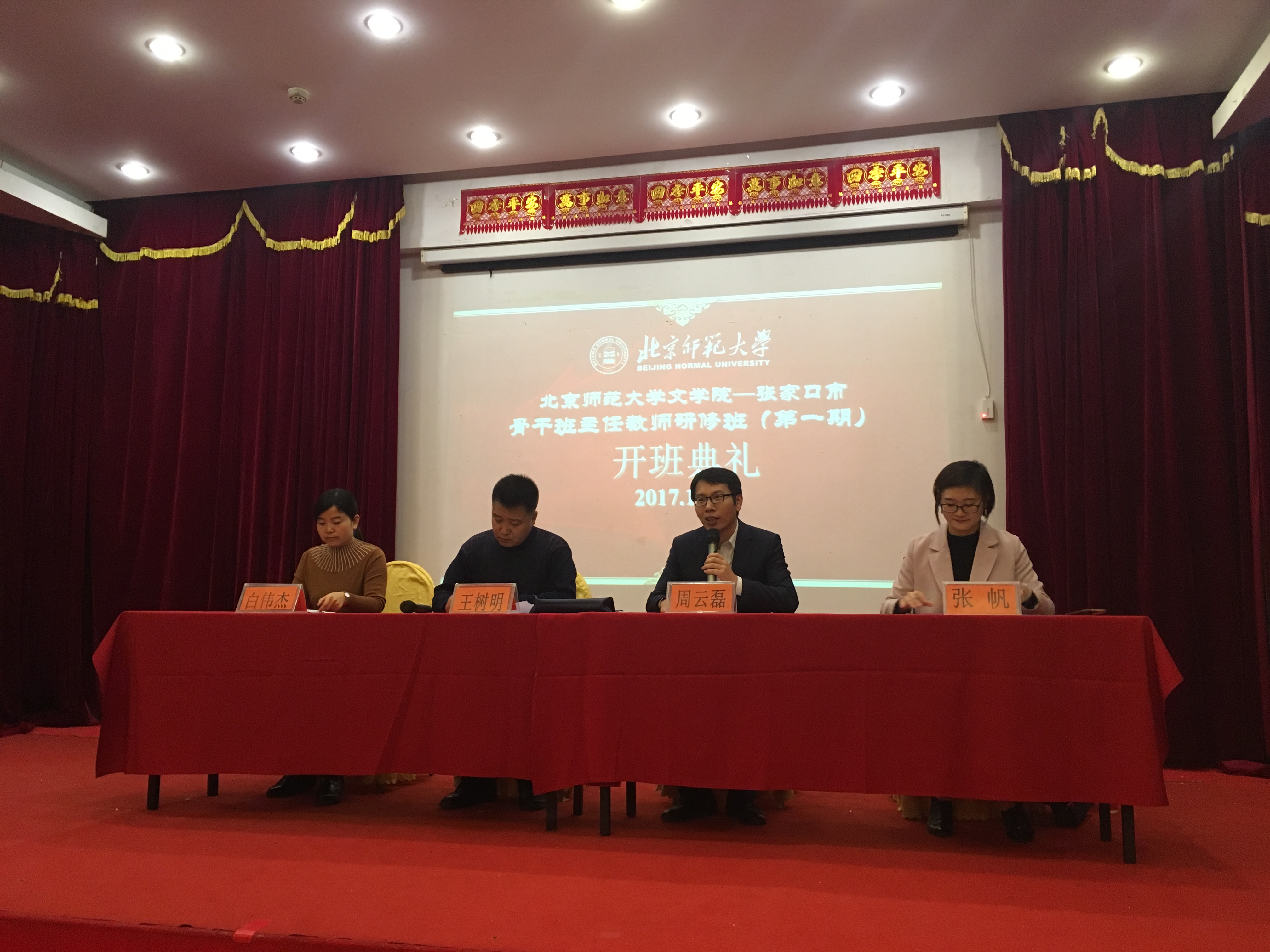 发展与合作中心副主任张帆向各位学员具体介绍了此次培训的流程及要求,至此,张家口市骨干班主任教师研修班(第一期)开班典礼顺利结束。在此次研修班之后,北师大91制片