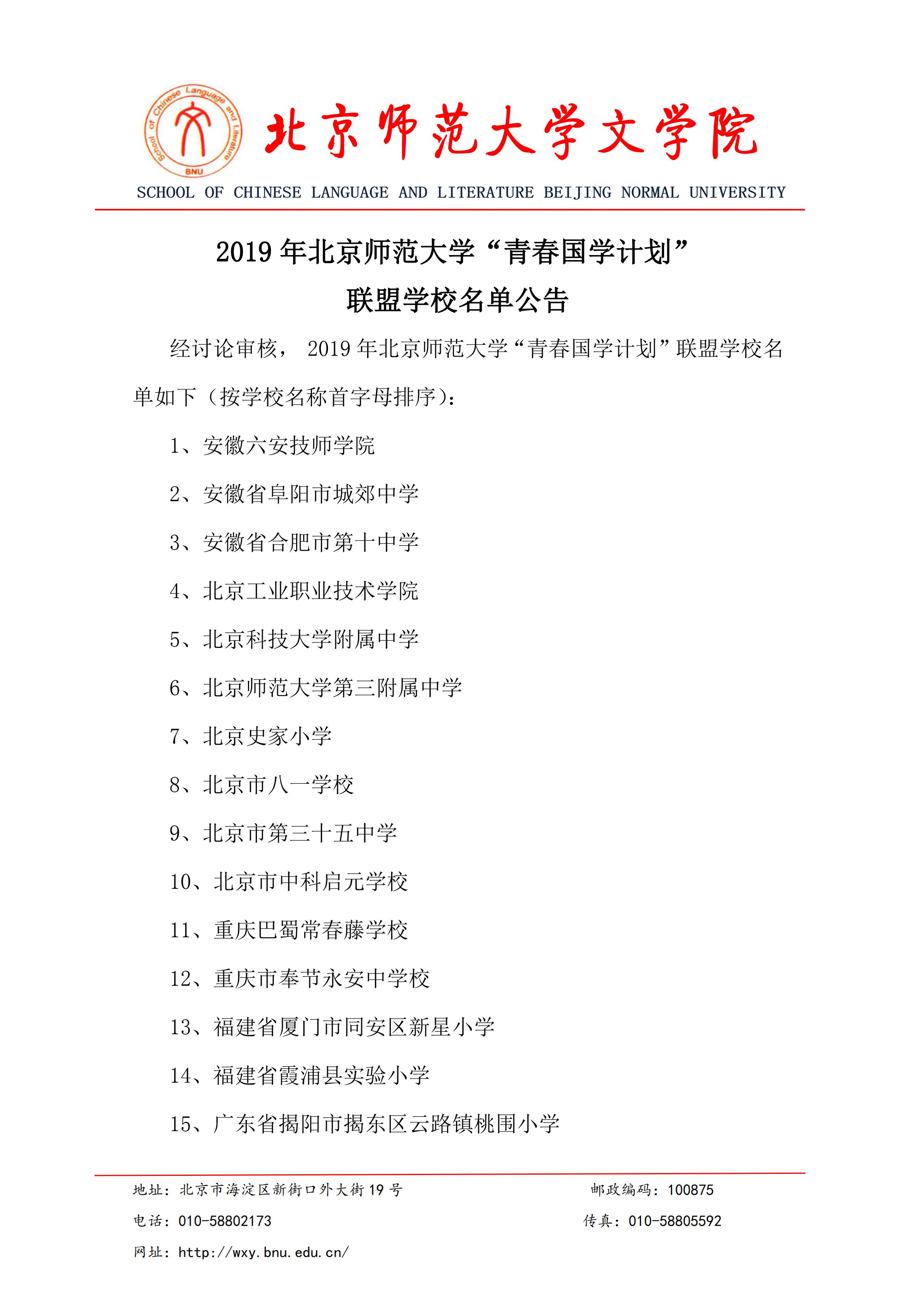 2019年91制片 “青春国学计划”联盟学校名单公告
