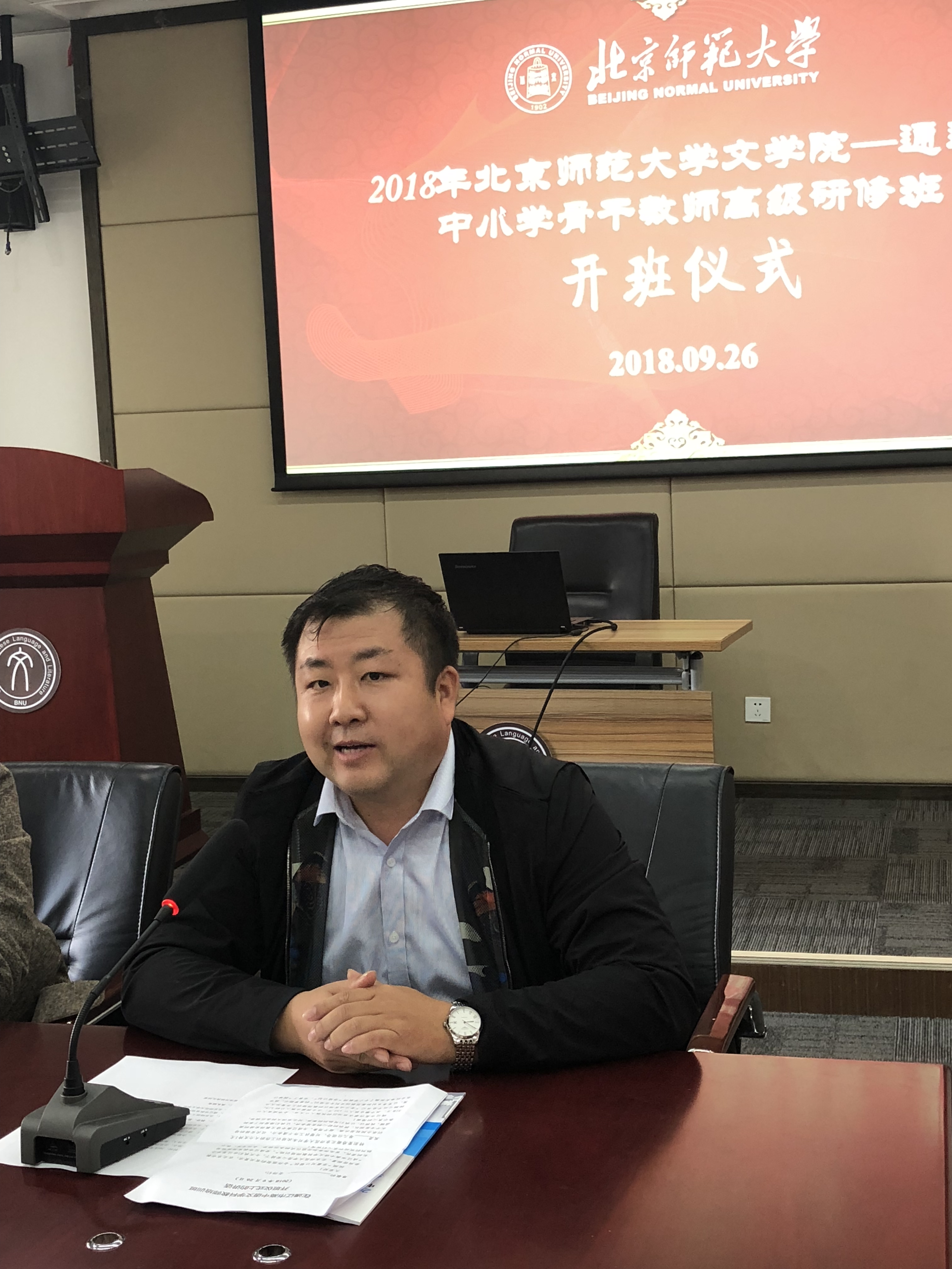 在课程上的精心设计和生活上的贴心安排。他还介绍到,通辽市是少数民族大市,典型的民族地区。近年来,党中央和政府不断加强对老少边贫地区的扶贫力度,通辽市也在今年首次加入到京蒙扶贫协作项目当中。本次培训的顺利开展,离不开各方的共同努力。各位老师当珍惜机会、认真学习,力求学有所得。此外,于老师还对参训老师提出了具体要求,要求参训教师服从安排,有大局意识;有针对性的学习,提高效率;遵守纪律,培训期间注意安全。最后,于老师对这些来自国贫旗县的骨干教师们提出了期望,期望他们将学习到的先进教育理念和方法,带回通辽,为贫困地区的教育事业做出贡献。
