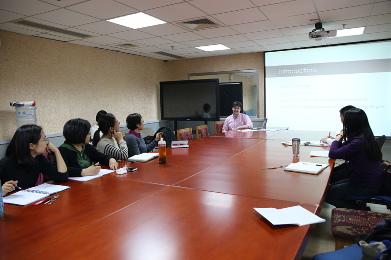 2015年3月29日,本学期第二堂“英语口语”课和第一堂“学术英语交流”课程如期举行,Trent Mcminn和Patrick McGuire老师分别为参加培训的学员授课。