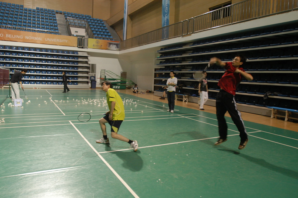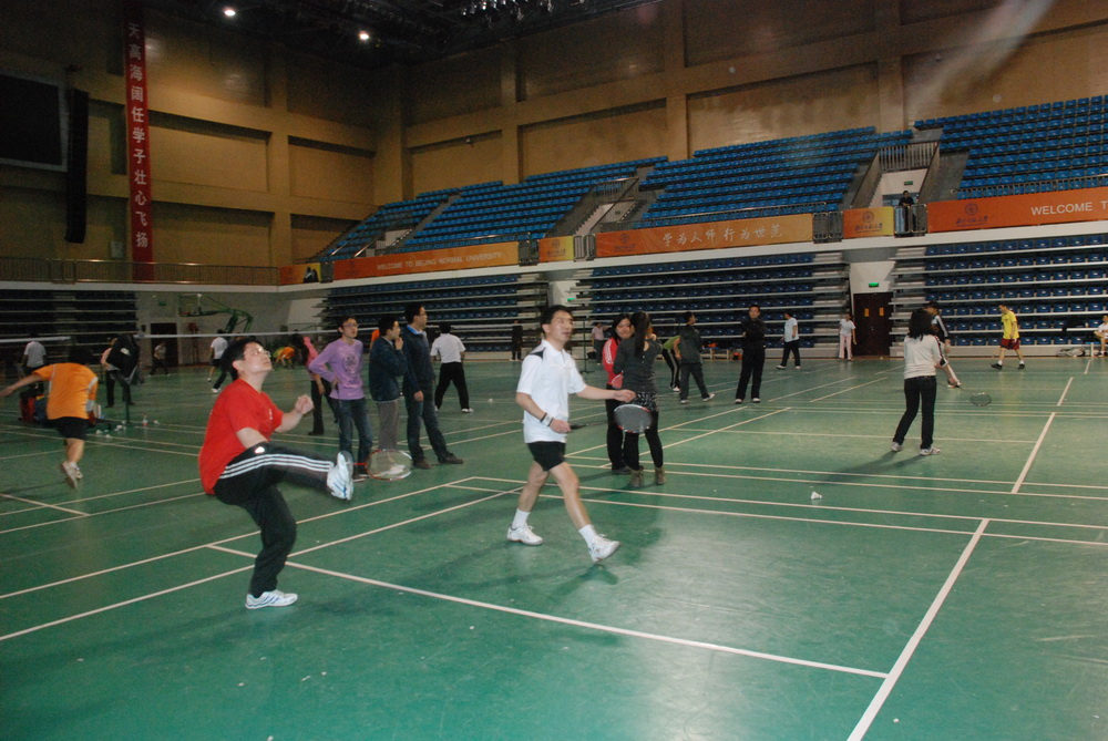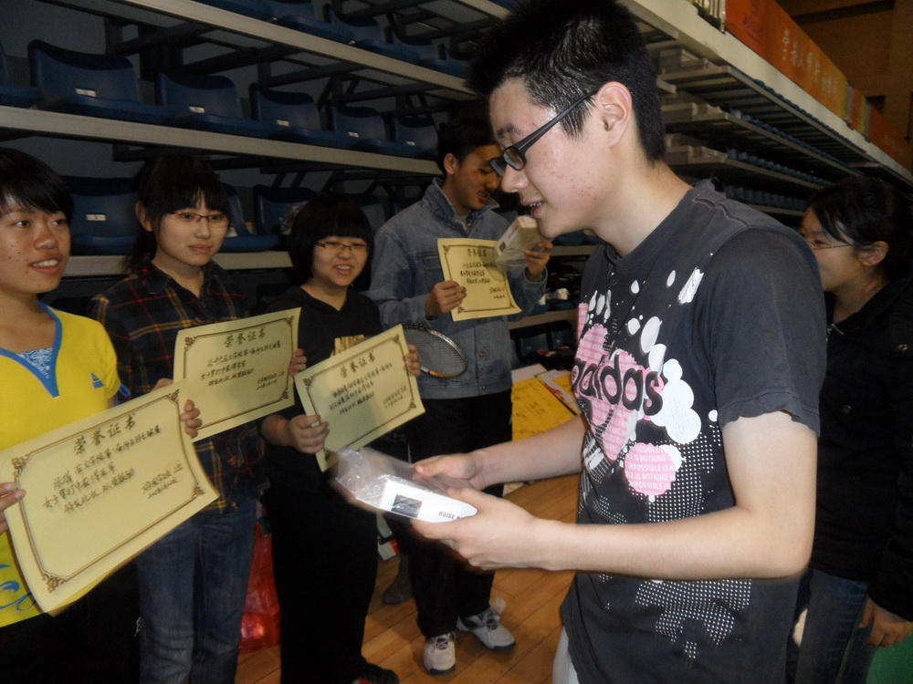 2011年3月23日晚6点91制片 师生羽毛球球艺交流赛在邱季端体育馆顺利进行,91制片 党总支书记兼副院长李国英老师、91制片 分团委书记兼91制片 研究生会秘书长周云磊老师、91制片 学生会秘书长沈涵老师等领导、众多老师和各年级羽毛球爱好者参加了此次交流赛。活动中参赛选手通过球技的相互切磋交流,一方面增进了彼此了解,同时也深化了师生友谊。 比赛分两个场地同时进行,北侧场地的女子组首先由沈涵老师对阵10级谷中兰同学,为我们带来了精彩的开场。南侧场地也紧接着展开了女双和男双的几场比赛。比赛不但激烈而且非常精彩,为观众们奉献了一次次漂亮的扣杀,一记记精彩的救球,体育馆内气氛热烈、叫好声不断。其中10级姚梧雨桐同学强势的进攻、10级刘修远同学严密的防守、沈涵老师与马琼老师默契的配合,给大家留下了深刻的印象。最终,由08级刘旷野同学和他的搭档荣获男子双打冠军,10级的胡传海和姚梧雨桐则折桂混合双打冠军。女子双打冠军则由09级张娟和10级徐梦迪获得。男子单打和女子单打的冠军分入10级刘修远和姚梧雨桐囊中。 在整场比赛中,选手们左突右防,挥汗如雨,以友谊第一比赛第二的精神共同营造了羽毛球强身健体、师生同乐的良好氛围。这次羽毛球友谊赛,给同学们提供了一次在课堂之余和老师们交流的机会,有力促进和谐学院的构建,可谓一举两得。