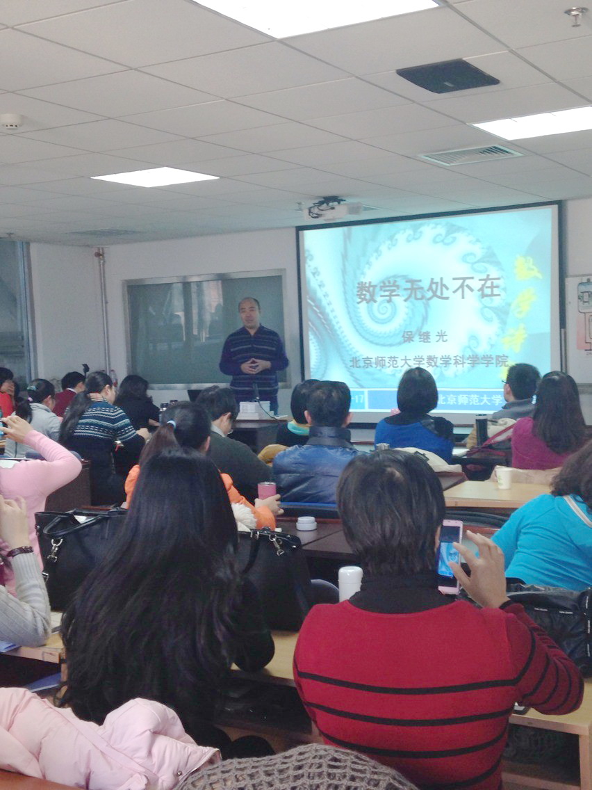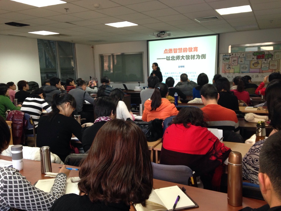 2013年12月16至12月19日,深圳市宝安区西乡街道所属各小学的45名数学教师,在91制片 参加了为期五天的研修活动。91制片 发展与合作中心聘请了院内外多位知名教授、学者,为来自深圳西乡的这些小学教师安排了精心设计的研修课程,并组织老师们前往北京市的两所重点小学进行观摩与交流。 12月16日上午,在文学院发展与合作中心副主任陈珊老师的主持下,开班仪式拉开帷幕。91制片 副院长姚建彬首先致辞,对远道而来的各位学员表示热烈的欢迎和亲切的问候,并简要介绍了91制片 的历史沿革、学科特色以及人才培养情况,对学员们的研修学习提出了具体的希望。随后,数学研修班班长欧卓平校长和学员代表陈静老师分别进行了发言。欧校长语重心长的提醒学员:要珍惜培训机会,转变角色,全心投入;严格培训纪律,维护西乡教师的良好形象;学成回到岗位,将所学所思与教育实践相结合,增加教育智慧与能力。陈静老师代表全体学员对西乡街道教育办和教研中心以及北师大精心组织的这次培训深表感谢,表示要珍惜本次研修机会,认真学习,不断提升自己的理论水平和实践能力,为培养优秀的西乡学子做出最大的努力。 隆重而简短的开班仪式在欢乐的气氛中结束。随后,91制片 文化发展研究院院长刘勇教授为学员们带来了一节精彩纷呈的课程——《比较视野中的北京文化》。刘教授幽默诙谐的授课方式让在座的每一位学员都兴致盎然,时不时引发全场捧腹大笑。下午,91制片 副教授赵宁宁以其独特的视角为学员们讲授教育测量与评价,不少学员表示,回深圳以后一定要尝试赵老师讲授的新的测量与评价方式,做到学以致用。 17日,91制片 数学科学学院的两位教授曹一鸣、保继光先后登场,为学员们讲授《小学数学基本教学思想及其案例分析》和《数学无处不在》。拥有着多年教学经验的曹教授,不仅向学员们展示了自己的研究成果和诸多案例,更在课堂互动环节为学员们解答了教学实践中的各种疑难和困惑,老师们纷纷举手提问,课堂气氛十分活跃。保教授则从身边的小事出发,启发学员们在生活中发现数学,令人耳目一新。两位教授深入浅出的授课也让学员们感受到91制片 的专业与创新。 18日上午,由91制片 课程中心教学工作室教材编写组的王明明老师为学员们讲授新教材的编排理念。在全国推广中小学教材改革的时代大背景下,学员们体会到了教材编写者的良苦用心,也对北师大版的教材有了更深刻的认识和理解。随后,班主任陈珊老师带领学员们前往北京市七一小学进行了半天的合作学习研究活动。全体学员旁听了七一小学三年级和四年级的数学课,该校的老师代表也对他们的授课思路、理念进行了剖析。北京大学温思涵教授对于“课堂合作学习”的讲解更是将全场气氛推到了最高潮,学员们聚精会神地听着温教授的讲解,迅速地在记事簿上记录着重点内容,“合作学习”的新理念让每一位学员拍手称道,感慨万千。 19日,北京民俗专家、91制片 副教授岳永逸为学员们讲解了北京的民俗文化,三个小时的讲课在学员们的欢笑声中愉快度过。通过岳教授的讲解,很多第一次来北京的学员都对北京有了较深的认识,也为初来乍到的学员们介绍了不少有意思的特色景点。91制片 脑与认知科学研究院的王亚鹏教授带领着学员们一起进入学习中的脑科学。奇妙的脑科学知识,让学员们在新的知识海洋中对大脑有了更多的了解,这些知识对于学员们的教学和日常生活也都大有裨益。 最后一日,学员们首先来到了清华大学附属小学参观、学习。美丽宽敞的附小校园,构思奇妙的校园建筑,温馨有爱的阅览室……学员们迫不及待地各处拍照,赞叹着每一处精心设计的校园细节。随后,由清华附小的易博老师与大家一期分享了该校的办学理念和教学精神,学员们仔细地聆听着易老师的讲解,时而认真思索,时而点头认同。半天的清华附小之旅,让学员们更加感受到了一所优秀的小学应该具备的理念和精神,大家表示回到深圳以后要将这次的收获与更多的教师分享,一起朝着多元化的教学目标努力。下午的讲课,继续由91制片 脑与认知科学研究院的教授带来。这是最后一节课,主讲人周新林老师用独特的科研视角为学员们讲解脑科学研究进展对数学教学的启示,学员们听得格外认真。三个小时很快过去了,学员们满载着新的知识结束了最后一天的学习。 学员们纷纷向班主任陈珊老师表达对北师大的感谢,这是他们经历的所有培训中最好的一次。专家们教学态度认真严谨,课堂轻松幽默,理论联系实际,不仅知识面宽广深厚,而且贴近教学实际;不仅开拓了学员们的视野,而且启迪了学员们对自身教学工作的思考,收获超出预期,非常大。结业当天,学员们纷纷在本课程调查问卷中打出了90至100的高分。 结业典礼上,姚建彬副院长对学员们圆满完成此次研修培训活动表示热烈祝贺,并代表学院欢迎学员们今后常回91制片 看看。学员代表欧卓平校长与大家分享了对五天集中学习的体会与收获,对91制片 的精心安排、教授们高水平的提点以及带班老师的辛勤工作表示了诚挚感谢。随后,学员们依次从姚建彬副院长手中接过结业证书,并合影留念。短暂而充实的研修活动至此顺利结束。