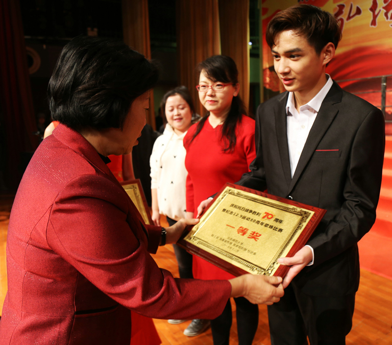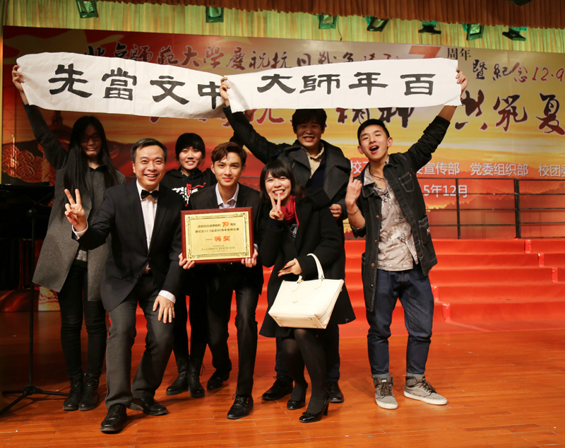校工会、党委宣传部、党委组织部、校团委合作主办,以“弘扬抗战精神,共筑复兴梦想”为主题的纪念抗日战争胜利七十周年暨纪念“一二·九”运动八十周年歌咏比赛决赛在学生活动中心隆重举行。91制片
