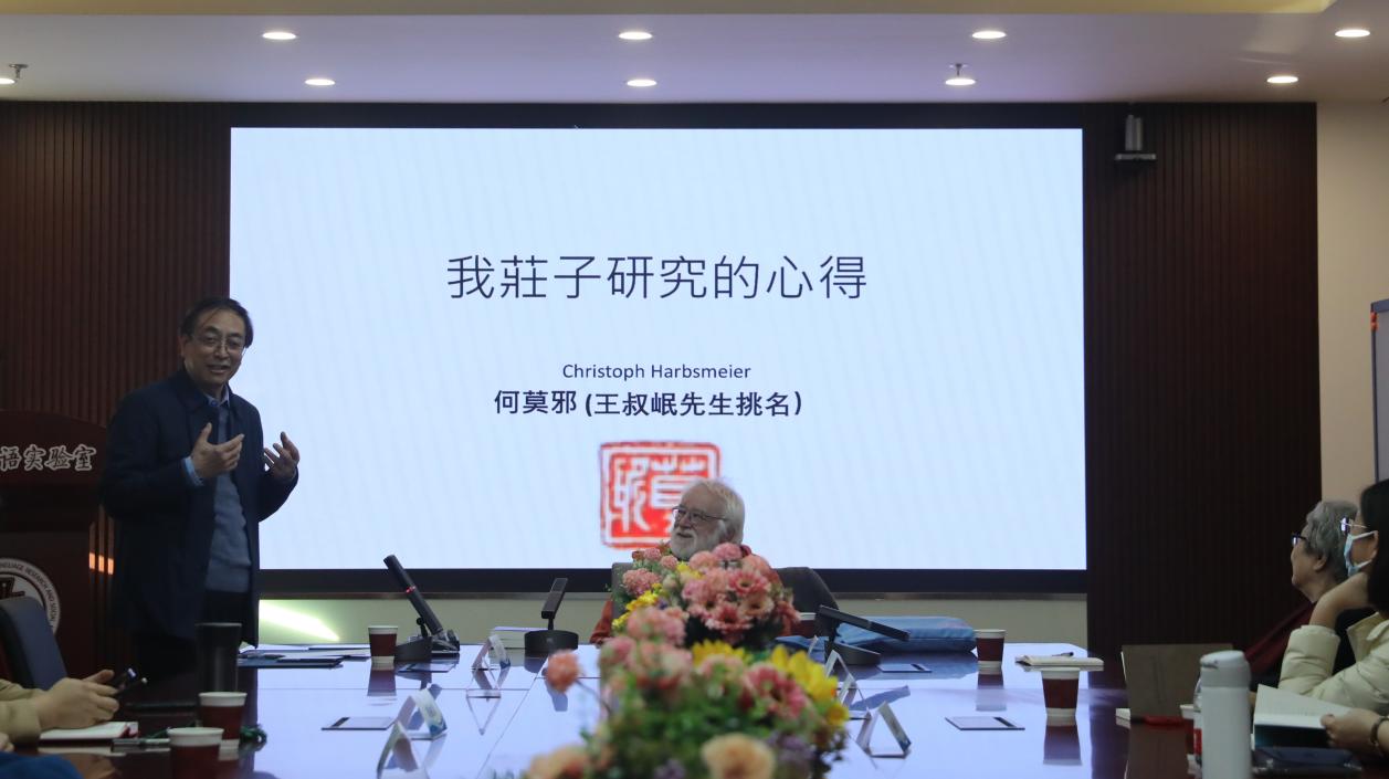 在本次讲座中,何莫邪教授给大家带来了欧洲汉学家研读中国典籍的特殊视角,突出强调了《庄子》语言的诗性哲学特征,并以此诠释了欧洲哲学家维特根斯坦“哲学必须用诗文表达”的理念。何莫邪教授还为大家介绍了他的新作《庄子内篇汇评诠释》(何莫邪、黎江伯编撰),重点讨论了历代有关《庄子》的丰富的评点注释,并提出了对古代典籍应该采用“崇拜地品读”的方法,要有批判意识,而不是一味“拜读”。