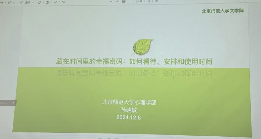 会议首先邀请心理学部孙晓敏教授为班主任开展培训,她讲座的主题是“藏在时间里的幸福密码:如何看待、安排和使用时间”,针对班主任日常工作中容易遇到的时间碎片化、时间安排冲突等“时间贫困”痛点,从时间意识建立、时间使用统计、时间安排方案等多个角度为班主任工作赋能。
