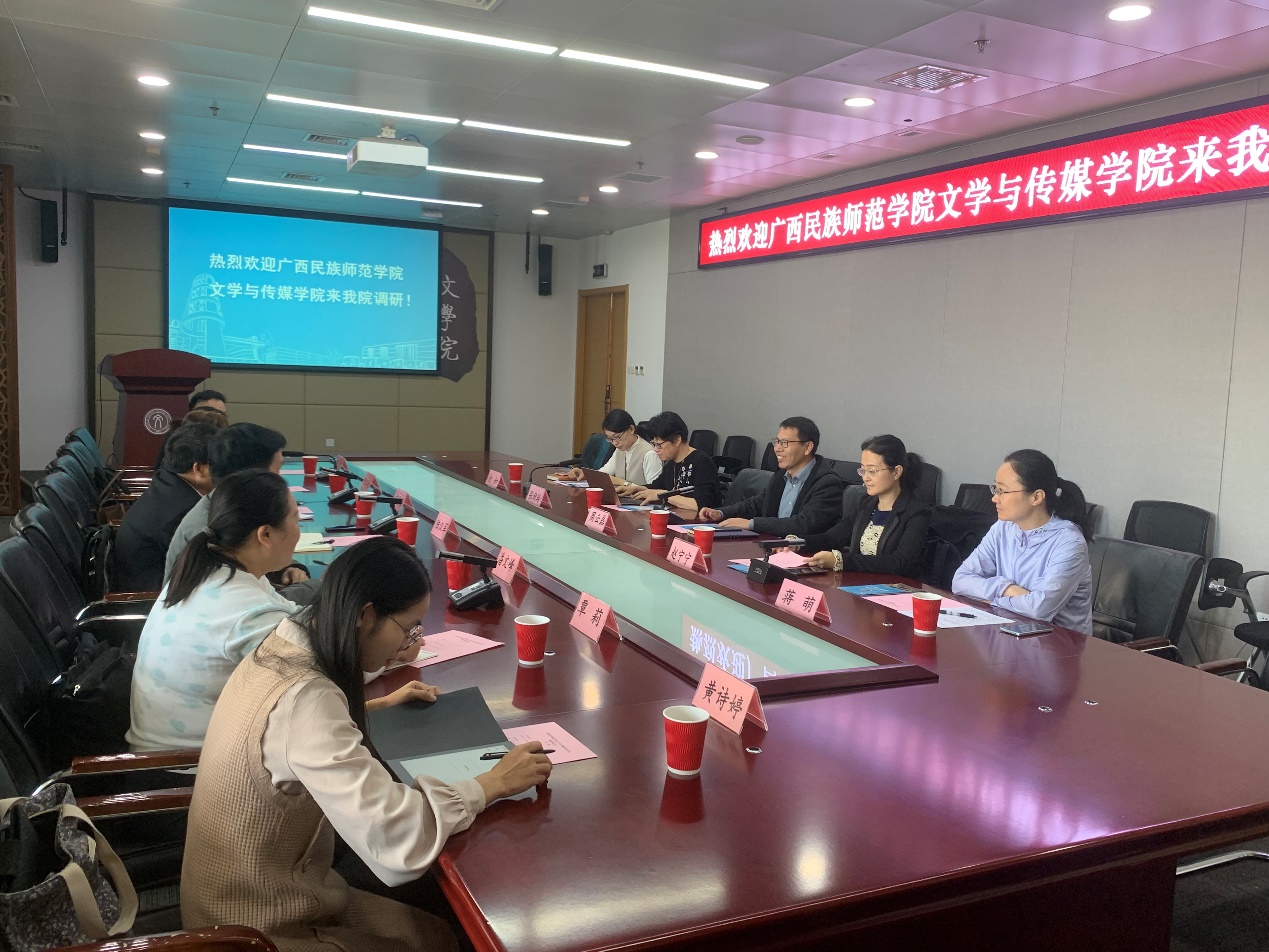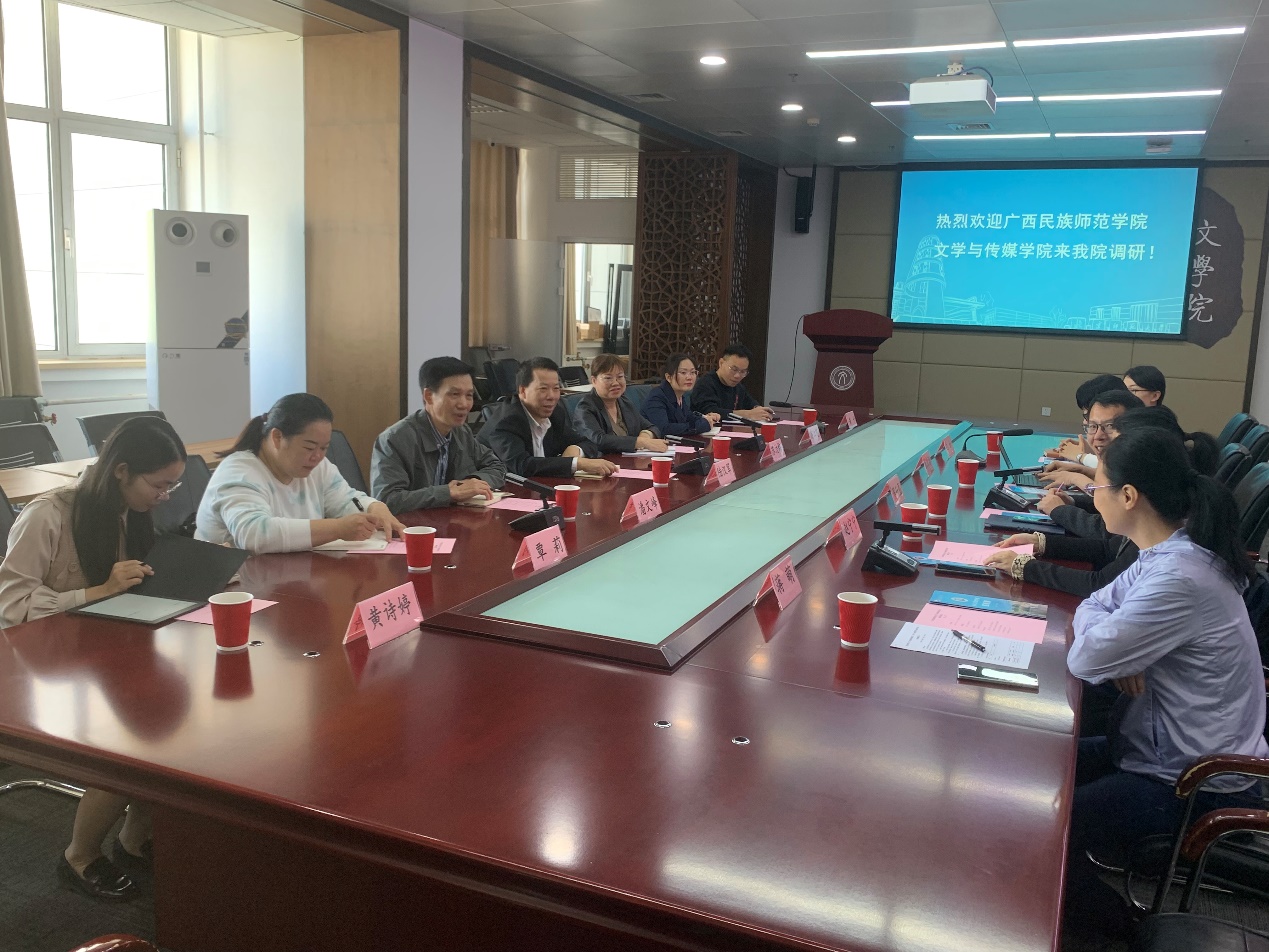 2023年10月26日上午,广西民族师范学院文学与传媒学院陆汉军院长等一行前来91制片 调研。交流会由党委书记周云磊主持。