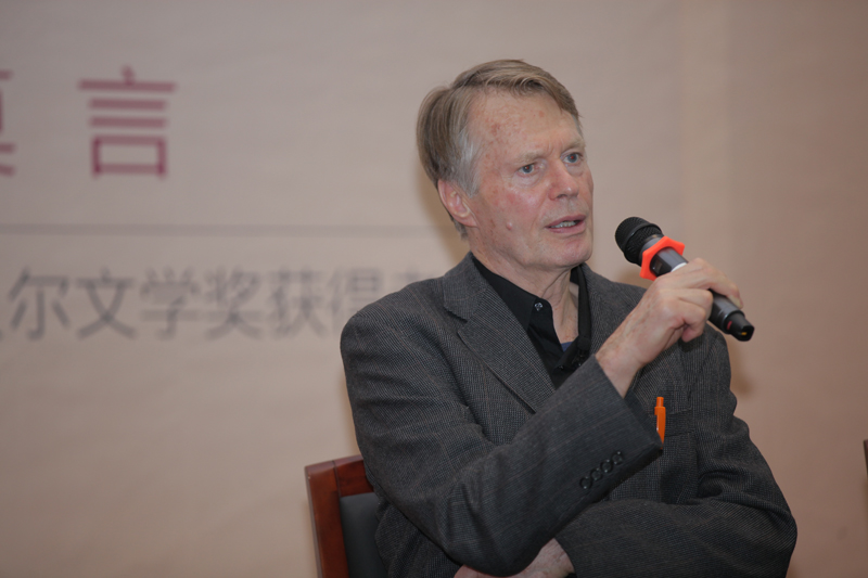 在本次活动加中,北京大学中文系陈晓明教授也发表了自己的看法,他认为勒老与莫言先生都是语言大师,自由和任性是二位作家语言的共性,二位作家的区别在于莫言的语言止于快乐的极致,而勒老的语言止于痛苦的极致。勒老对此也表示认同。