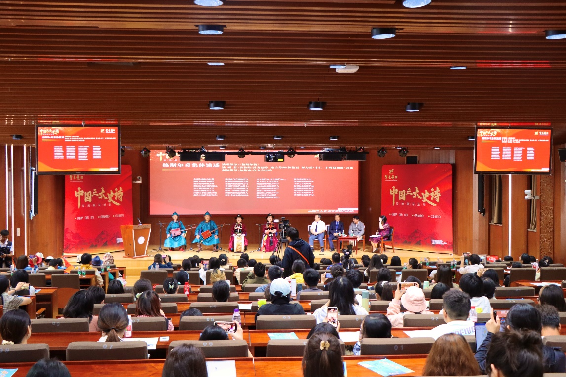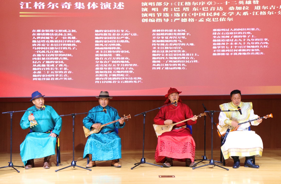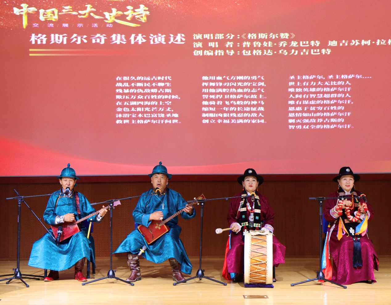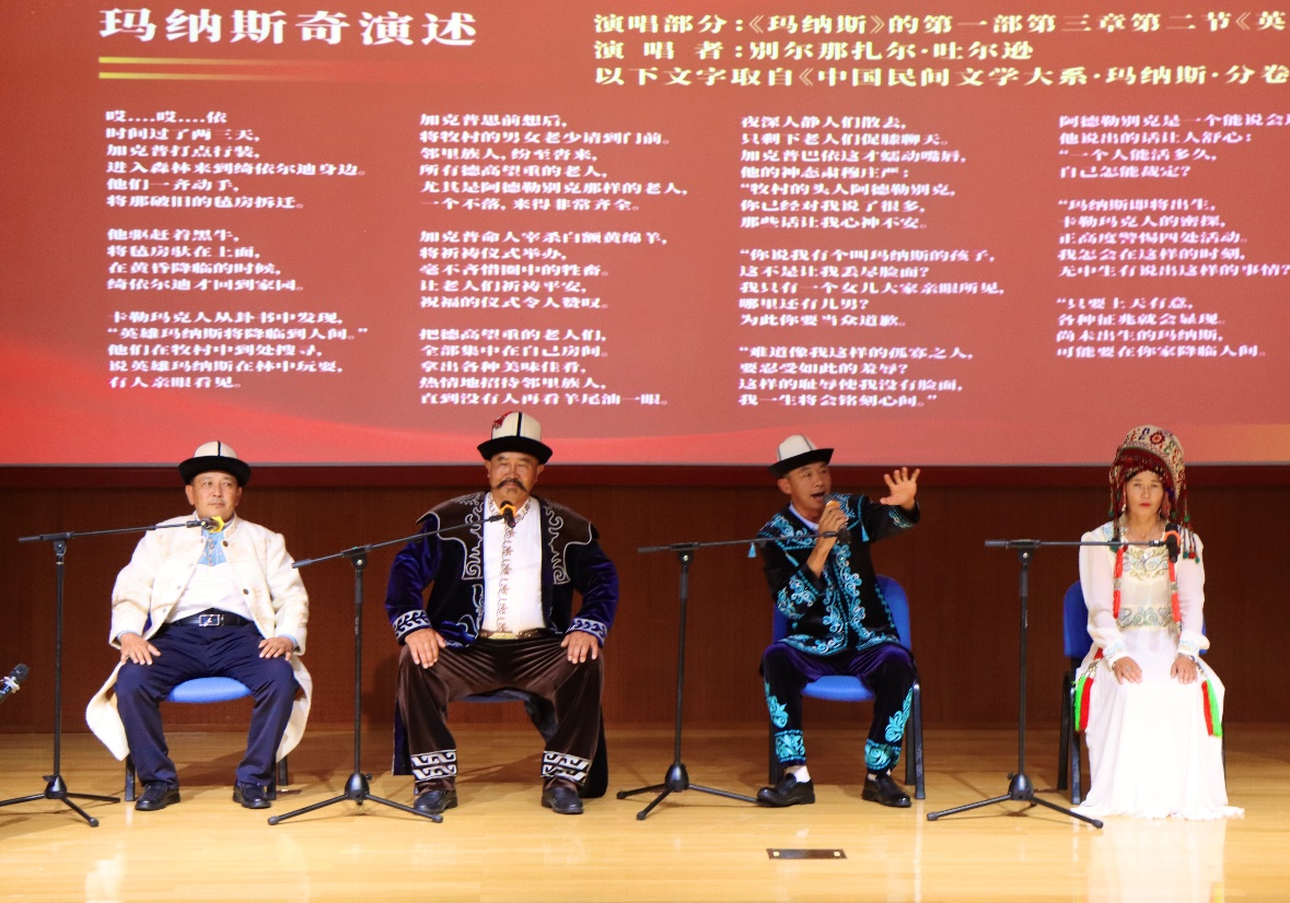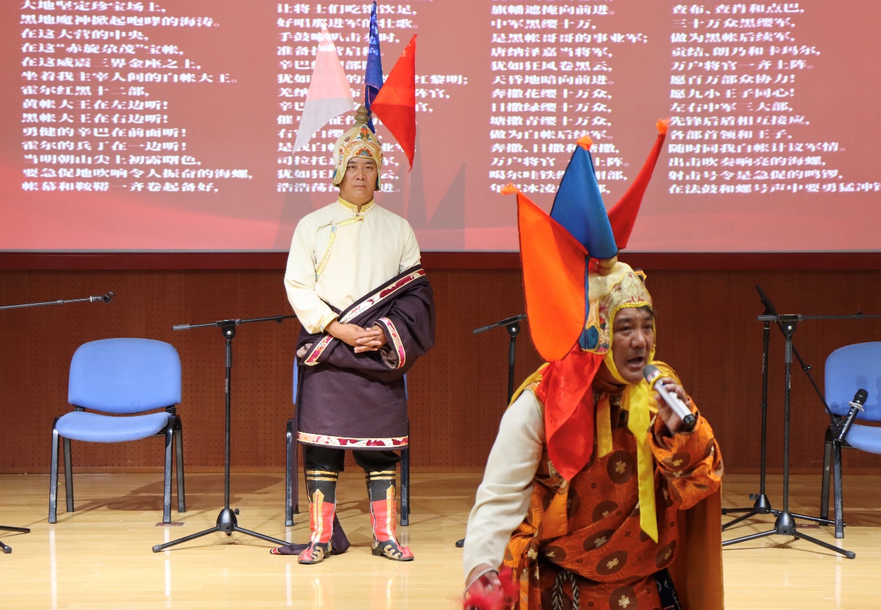 演述活动中,来自新疆、青海的史诗传承人分别演述了柯尔克孜族史诗《玛纳斯》、蒙古族史诗《江格尔》、藏族史诗《格萨尔》和蒙古族史诗《格斯尔》的片段,使极富民族特色与历史韵味的史诗传统穿越了时空的距离,走进校园,为现场师生带来了一场视听盛宴。