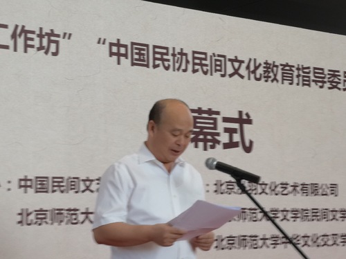 9月17日,由中国民间文艺家协会批准成立的“民间艺术大师进高校工作坊”挂牌暨“中国民协民间文化教育指导委员会”成立仪式在北师大四季厅举行。中国民协驻会副主席、分党组书记邱运华,副秘书长周燕屏,91制片
