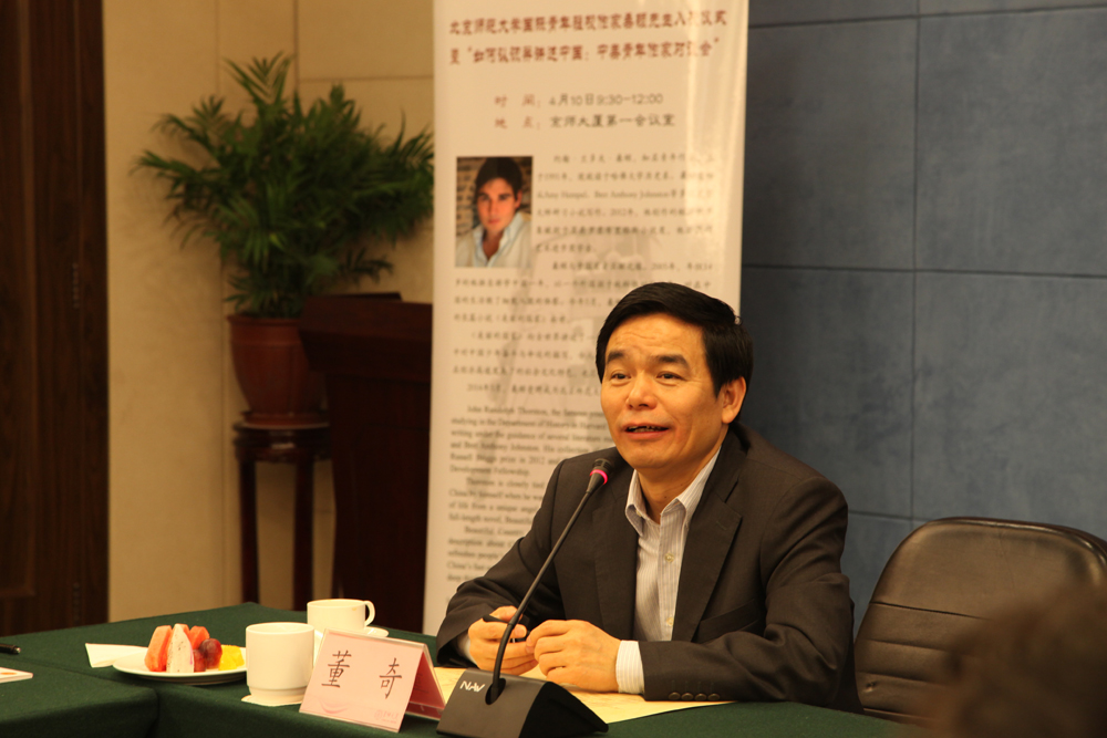 的一员表示衷心的祝贺。他在欢迎辞中体现了对于文科教育的关心和重视,认为大学不仅应在学业上服务社会,还应该为青年作家的成长提供更好的条件。他希望桑顿在北师大驻校期间能加深对中国各方面的体验和了解,并表示会进一步大力支持国际写作中心的工作。