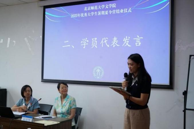 随后举行的敬文暑校结业式由杨利慧教授主持,万建中教授致辞。万建中教授鼓励学员关注底层社会群体的命运与情感诉求,并寄语学员在未来取得更大成就。杨利慧教授代表研究所向所有结业学员表示祝贺。山东大学姬厚祥与陕西师范大学王夕丹作为学员代表发言,表达了对北师大91制片