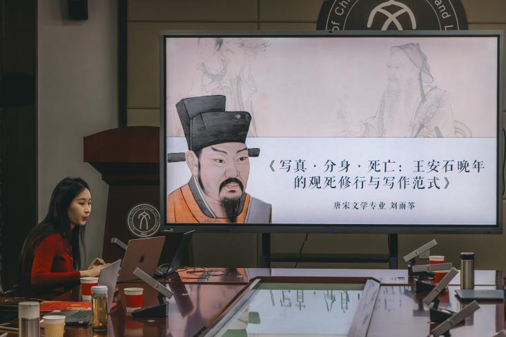 5049会议室举行。聂石樵奖学金执行人聂大昕老师,古代文学研究所马东瑶、李小龙、周剑之、谢琰、莎日娜、刘全志、颜子楠、吴沂澐、余丹、任刚、崔振鹏等老师出席,二十余位古代文学专业的硕士、博士研究生参加了此次颁奖仪式。仪式由中国古代文学所所长周剑之老师主持。