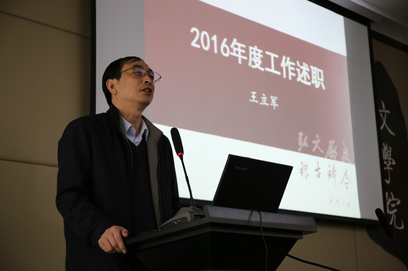 分党委建设情况、学院2016年财务状况以及学院所取得的成绩;张清华副院长围绕研究生人才培养、教学管理、科研项目等进行了汇报,并对国际写作中心的工作进行了回顾;马东瑶副院长就本科生教学管理、人才培养以及本科生教学基本状态数据库建设等工作进行了重点介绍;方红珊副书记围绕教师党建以及学院人事工作做了汇报;周云磊副书记就全院学生工作做了全面汇报。各位领导在汇报最后,均对全院老师的鼎力支持表示衷心感谢,并且希望老师们在2017年继续关心、支持学院的各项工作。