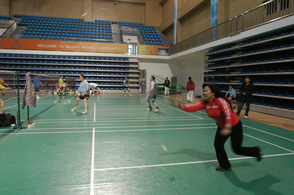 在整场比赛中,选手们左突右防,挥汗如雨,以友谊第一比赛第二的精神共同营造了羽毛球强身健体、师生同乐的良好氛围。这次羽毛球友谊赛,给同学们提供了一次在课堂之余和老师们交流的机会,有力促进和谐学院的构建,可谓一举两得。
