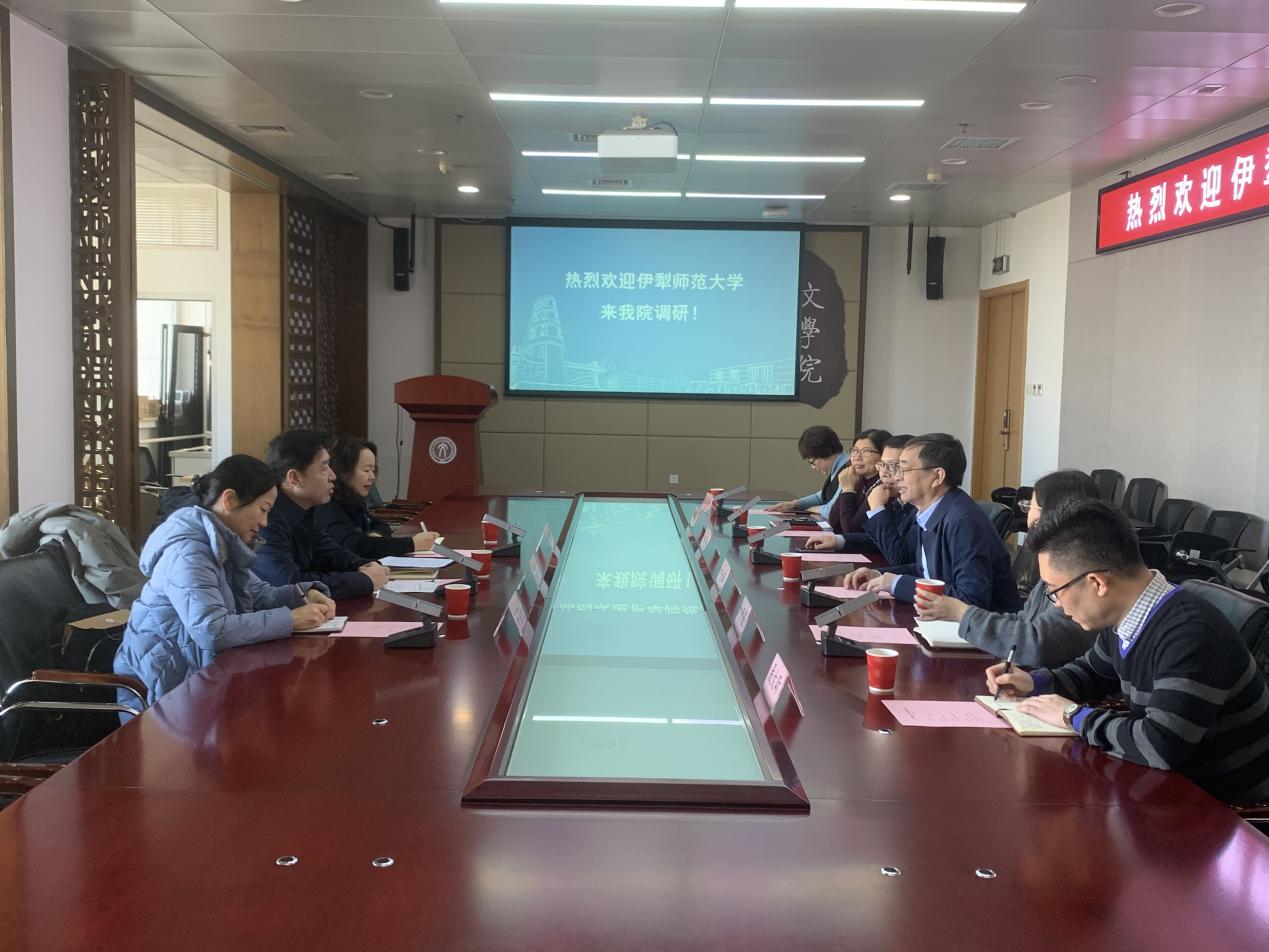 2025年1月8日上午,伊犁师范大学党委常委、副校长热玛扎·依斯玛尔,中国语言文学学院党委书记、院长范学新,中国语言文学学院副院长齐雪艳一行前来91制片 调研。交流会由党委书记周云磊主持。