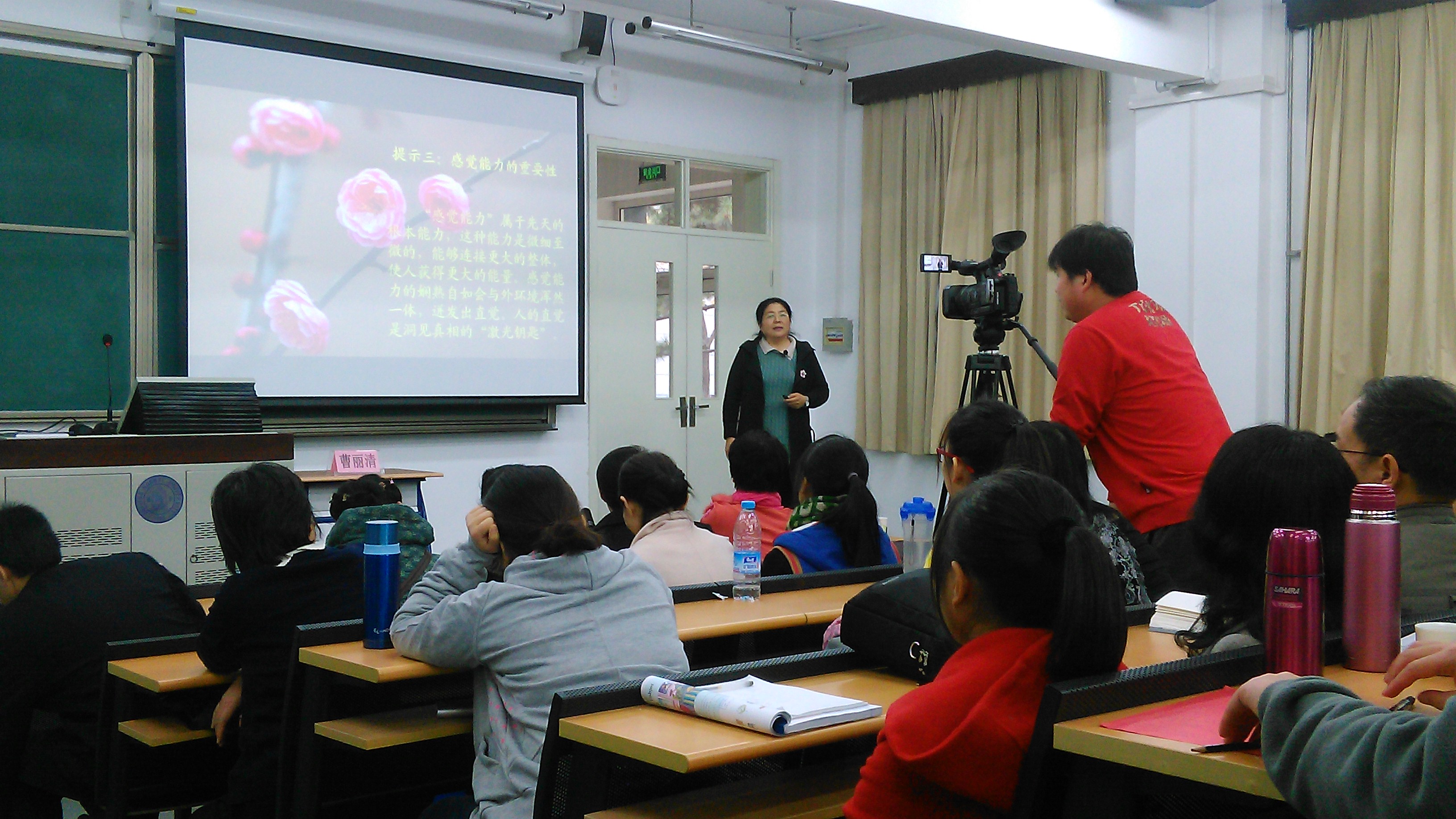 分团委和生活指导室联合举办,并邀请到毕业于北师大应用心理学的博士校友、正源教育中心创办人曹丽清老师担任本次幸福课的主讲嘉宾。曹老师数十载一直致力于大学生心理健康教育,主持多项国家社科基金项目,在清华举办“清华幸福课”讲座引起了很大凡响。聆听讲座的不仅有北师大的同学、老师,还有很多校外的家长带着孩子慕名而来。