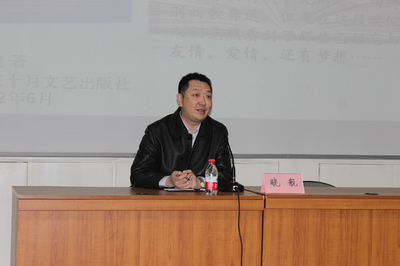 在讲座之初,晓航介绍了他走上文学创作道路的原因。其一是他从小受到的正面激励以及对文学的热爱,其次是在对社会的适应过程中需要自我的心理调适,还有就是对自我价值的期许。除此之外,梦想的支撑也是必不可少的条件。接着,晓航提到了文学之于个人的意义,并提出了四个方面的内容。首先是怡情,这是人最朴素的需求。其次是修身,他以《红楼梦》为例比较了黛、钗两人对待功利不同的态度,突出了文学对人思想的启迪作用。再者是帮助对抗现实。人类有两种追求,一种是至善主义追求,这是不可放弃的;一种是功利主义追求,这是不可极端化的。当功利主义日渐占上风,社会只能呈病态发展,因此,文学就是直面现实,对抗现实的功利主义,弘扬至善主义精神。最后,文学促使人探寻生命的意义。晓航认为,生命的意义不在终点,而在路途中。文学能帮助人由感性认识上升至理性思考,终极目标就是寻找到生命的意义和追求.此外,他还指出文学之于时代的意义也是不容忽视的。这种意义主要表现为:对抗现实中的道德沦丧、腐败现象以及金钱至上的思想;从担负社会责任的角度对社会提出质疑和批评,在反省中探寻有别于周遭人群的意义;文学表达着人生的追求,揭示人类生存的窘境、矛盾与冲突,却能够面对现实善恶进行客观超越。 最后,晓航提到文学的敌人来自于外部和内部两个层面。在外部,主要有固化的意识形态、市场、以通俗文学和网络文学为代表的其他文学形式以及其他艺术形式如影视的挑战,尤为突出的还有未来作家与人工智能的抗衡;在内部,也存在着与个体创作者的固化思维、逻辑结构缺陷、写作惯性和功利主义追求的斗争。