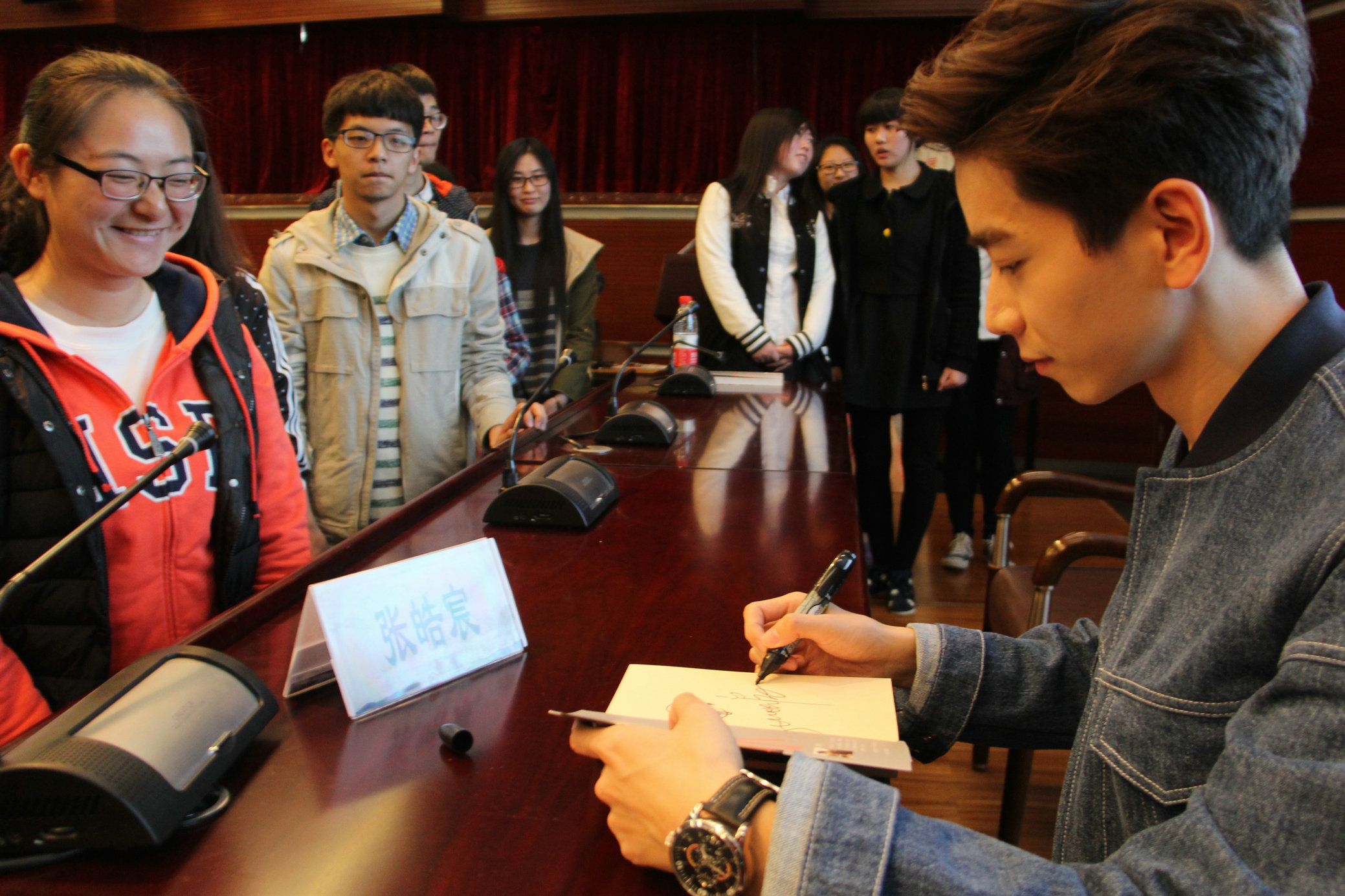 讲座的最后,张皓宸签售《我与世界只差一个你》一书并与91制片