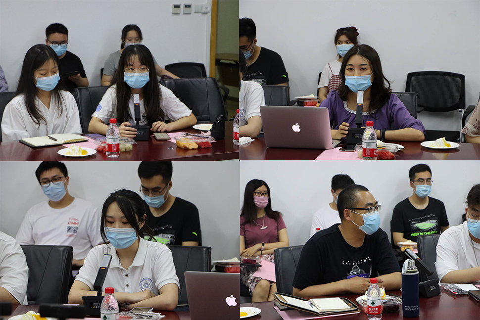 硕士研究生毕铮简要介绍了研究生毕业年级的就业形势和面临的问题。本科生代表赵九歌介绍了疫情期间支部理论学习、组织抗疫活动的情况。余梁映雪对学院在疫情期间对大家的关心和帮助表示感谢。徐昌祯介绍了公费师范生班的就业情况。丁思瑶介绍了研会在疫情期间线上举办的丰富多样的求职就业活动,更好地服务同学。第一批返校学生朱光鑫在会上谈到学校与学院关爱湖北学生,寄去最紧缺的物资,缓解燃眉之急,让他倍感温暖。博士生代表张翼飞在会上分享了假期见证抗疫实践与理论学习的感悟。