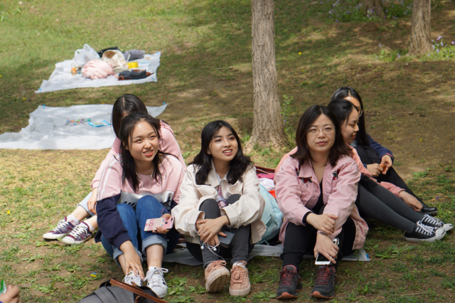 到达徒步的目的地后,同学们开始野餐。但所谓“醉翁之意不在酒”,大家其实并没有怎么吃东西,而更热衷于一起玩游戏。起初,大家多是熟悉的同学扎堆儿一起玩儿,之后,在班委和莎莎老师的组织下,全班同学围在一起,玩了“数字炸弹”“拍三令”等小游戏,看似简单的游戏,玩起来也趣味非凡。输掉每局游戏的同学都需要向大家自我介绍并表演才艺或玩“真心话大冒险”。起初大家还显得有些拘谨,但几轮之后,大家都放松下来。在游戏的过程中,大家记住了更多同学的名字,了解了更多同学的特点。并且,三班的同学们在游戏中发挥了自己的才艺,有同学为大家献歌,有同学表演了自己原创的说唱,有同学为大家表演小品,莎莎老师还为大家演奏了一曲《关山月》,同学们在惊叹大家的多才多艺的同时,也慢慢熟络起来。