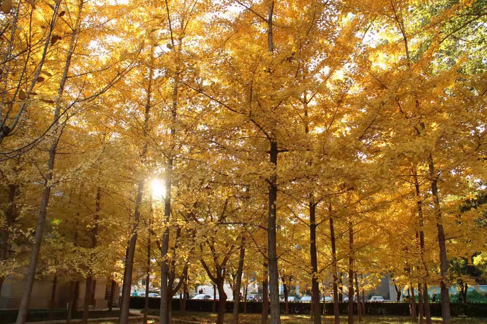 途经落英缤纷、水波潋滟的绿园,花喜鹊在金黄的银杏林中蹦蹦跳跳,成熟的柿子缀满高高的枝干。羡慕北航学子不出校园即可享受如此醉人的自然风光。