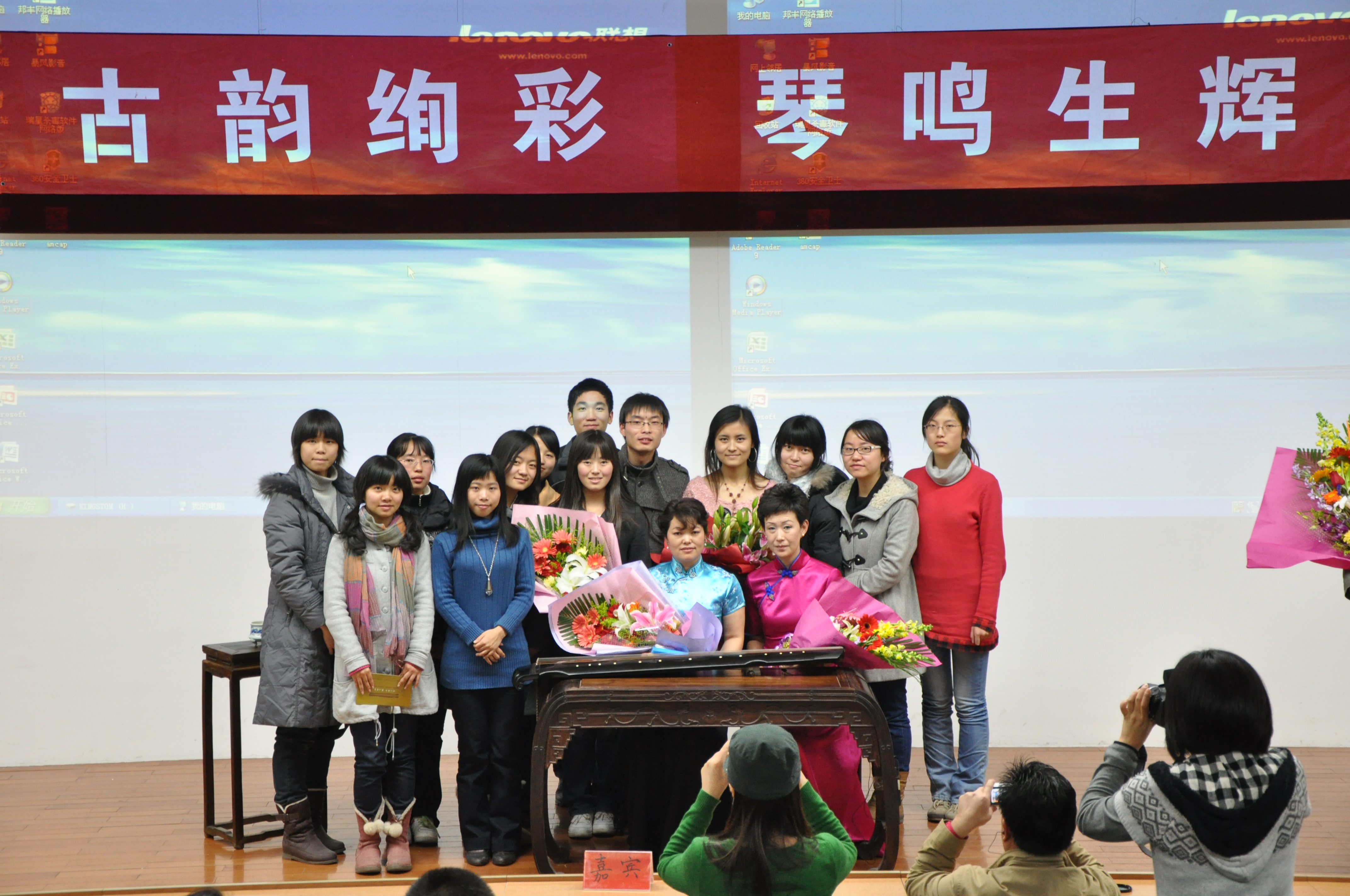 在接下来的互动环节,主持人请大家交流听完古琴后的感受,同学们都表示深受启迪洗礼。活动最后,琴社工作人员献上鲜花并与嘉宾合影留念,活动圆满结束。