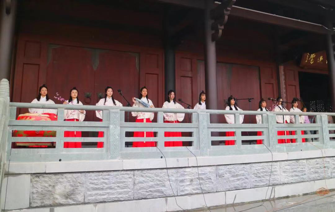 下午两点,古典诗词联吟活动正式开始。汨罗市政府组织了千余名中小学师生观看演出,海峡两岸诗社依次带来风采各异的诗词吟唱表演。