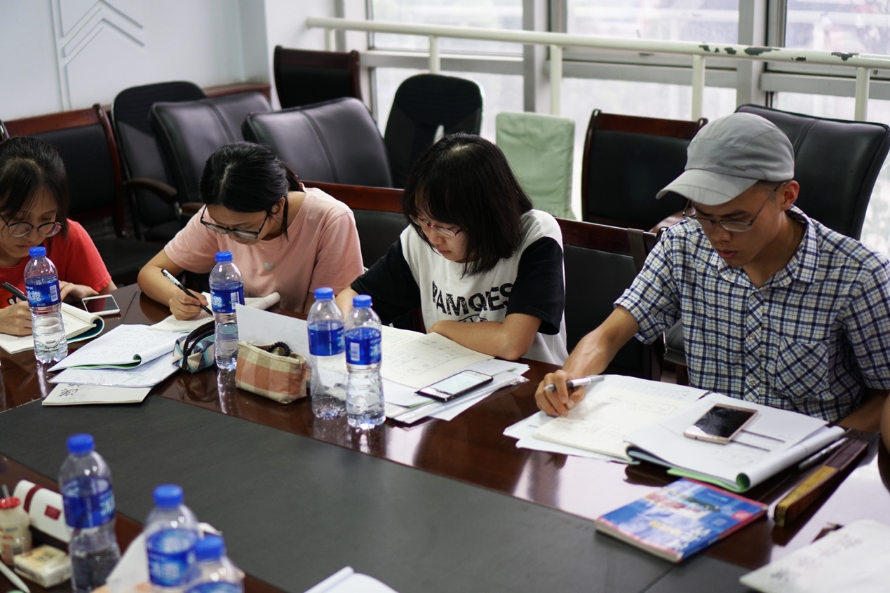 7月3日-4日为在校培训阶段。曹老师为大家介绍了国际音标的使用规范、语音学的基础知识和方言调查的基本方法,向大家说明了调查大纲的编写原则和《方言调查字表》的使用事宜,并邀请了方梦洁同学担任发音人,进行了一次模拟记音。短短两天的培训使同学们掌握了基础理论知识,演练了调查方法,熟悉了调查流程。