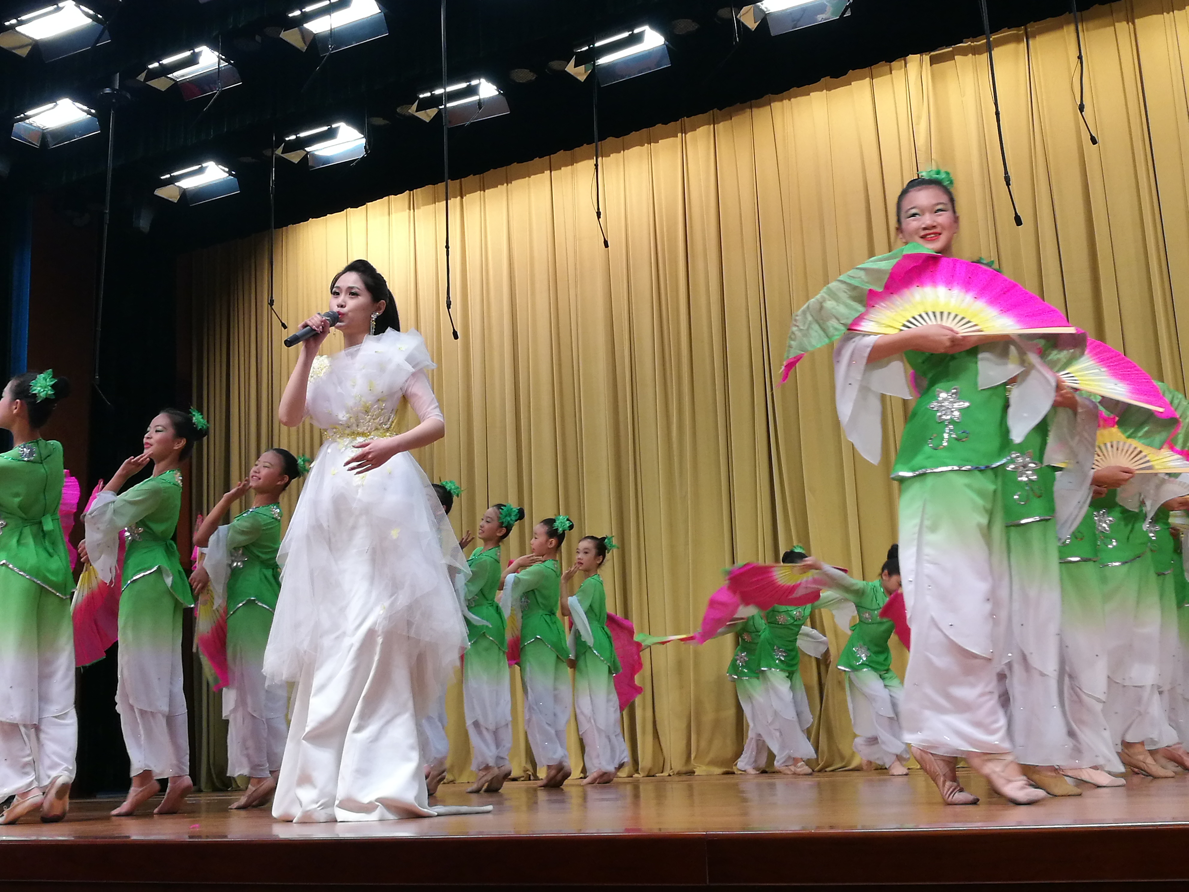 研究生刘智晗带来了歌曲《龙文》,“宫商角征羽,琴棋书画唱,孔雀东南飞 织女会牛郎,深爱这土地,丝路到敦煌,先人是炎黄,子孙血一样”,唱出了师大学子与二小学子一道,大手拉小手,共同学国学的美好展望。