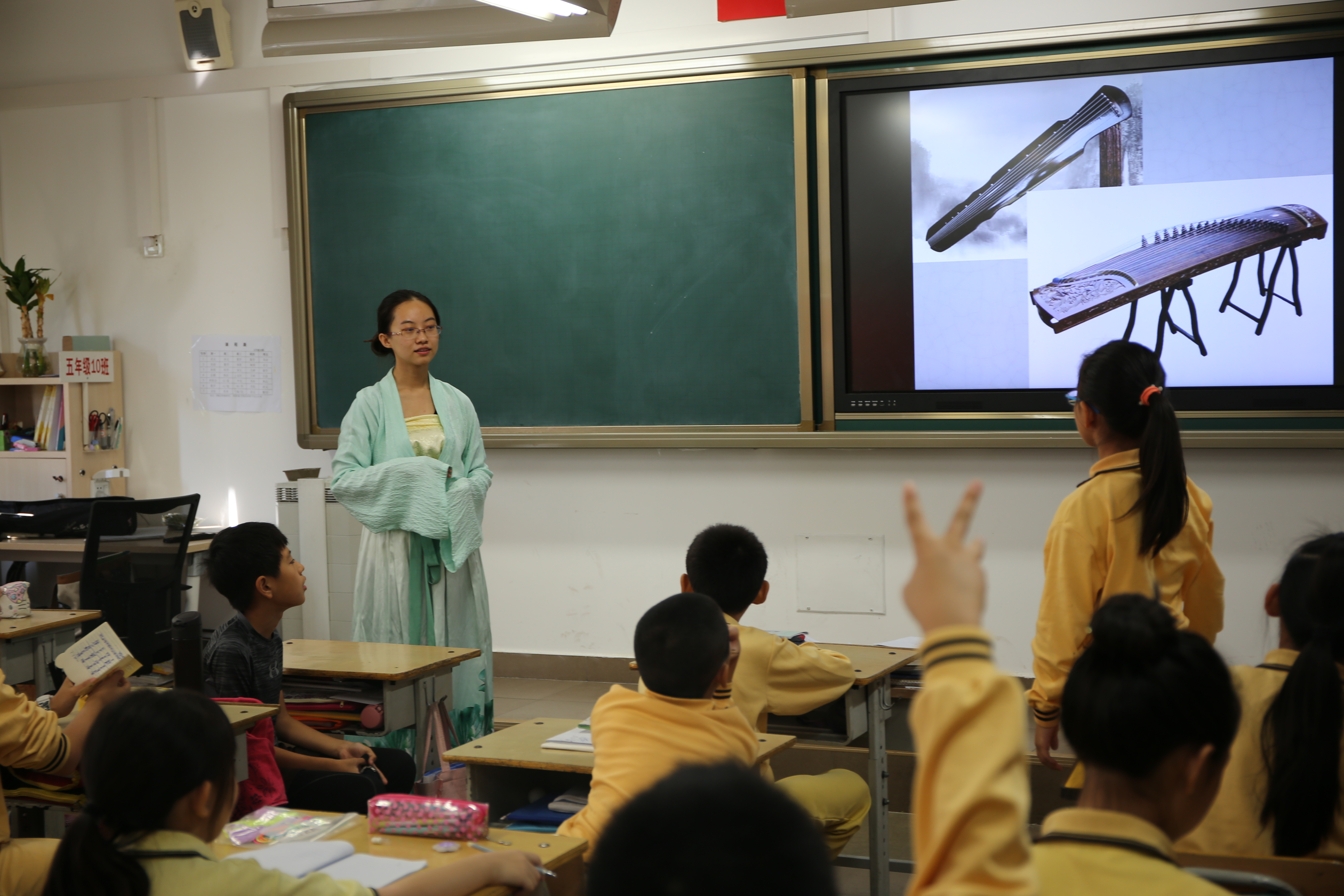9月28、29日上午,南山诗社、华章汉服社、松风古琴社、韶兮国乐社、以雅昆曲社、民俗学社、“中华诵”经典诵读协会等7大传统文化社团的50余名大学生走进北京第二实验小学,面向二小三年级、五年级的1000余名同学开设国学选修课,为他们带来了一场丰富的传统文化盛宴。