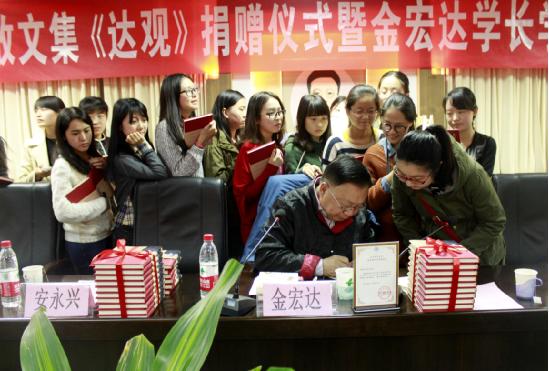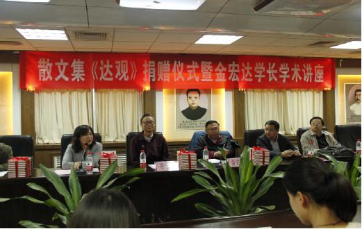 10月23日下午3点,金宏达学长散文集《达观》捐赠仪式暨学术讲座在主楼励耘报告厅举行。金宏达学长向91制片