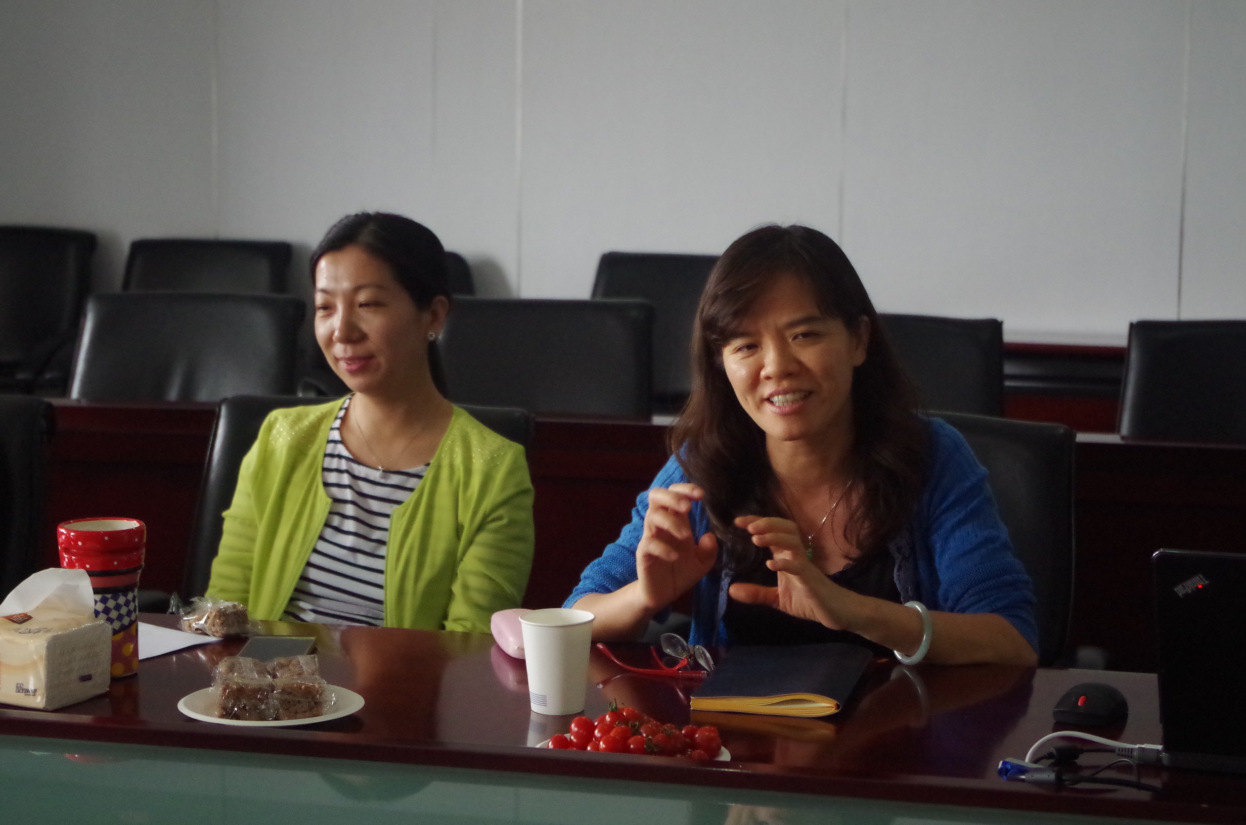 (图五:云慧霞副社长(左)、刘新英老师(右)耐心解答同学们的疑问)