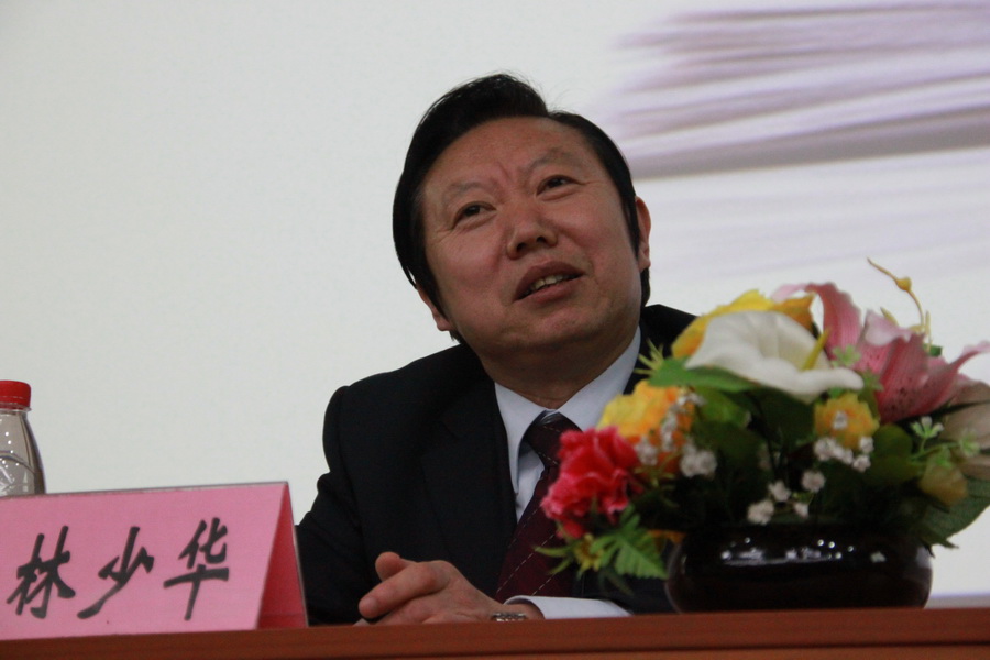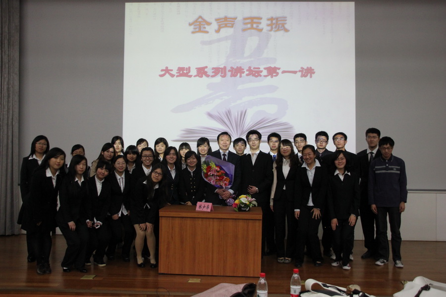 副院长王立军,校团委副书记贺利华,金声玉振系列讲座第一讲的主讲人林少华老师等校方和91制片
