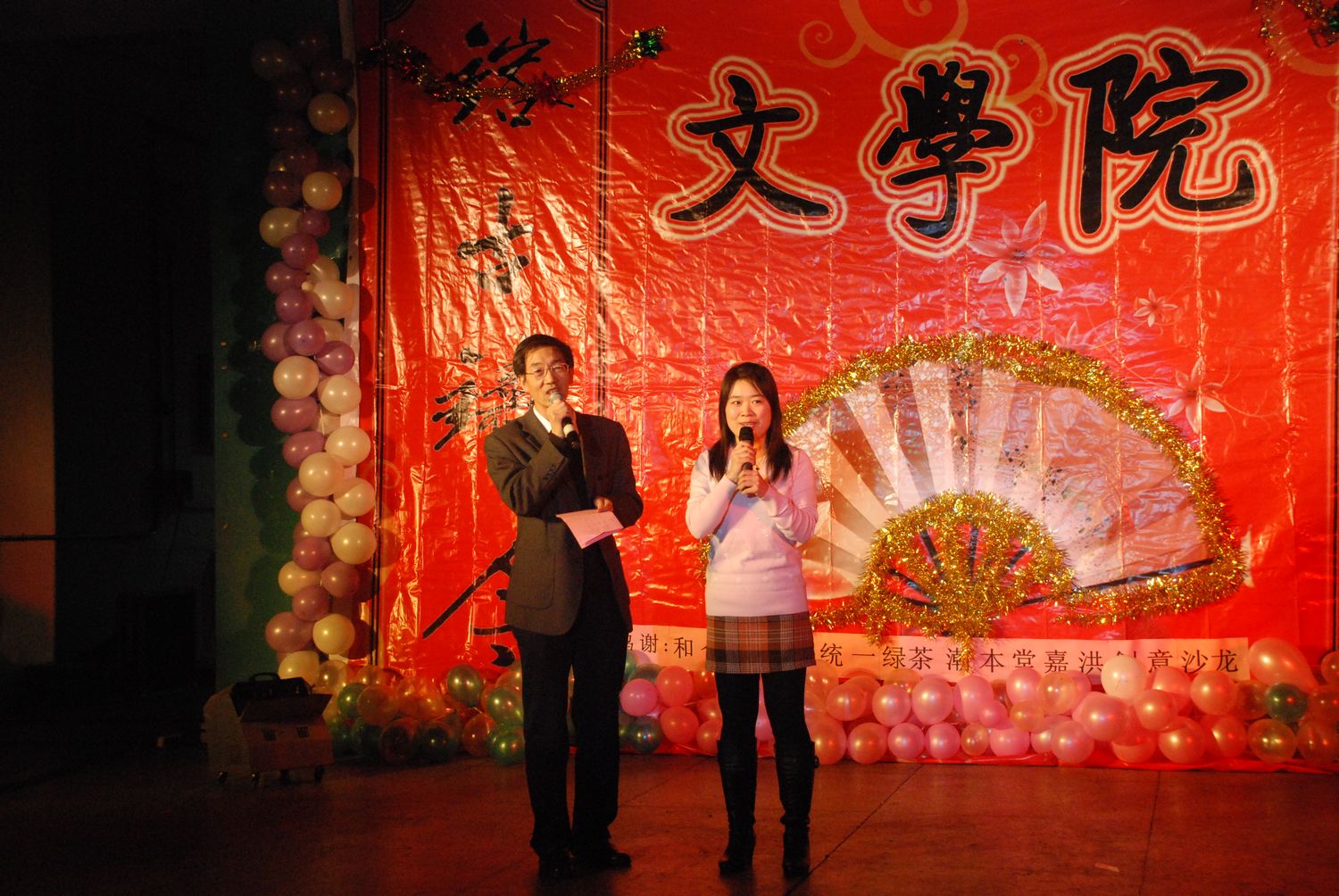 元旦晚会在学五食堂二层隆重举行。91制片