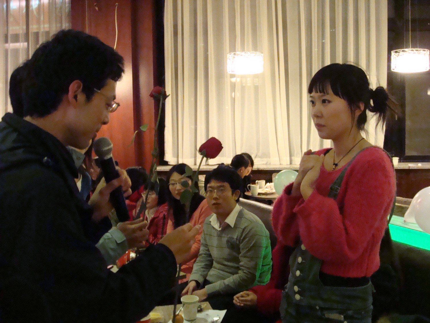 女生献玫瑰花,全场迎来最高潮。活动结束以后,清华大学研究生会的工作人员向在场女生赠送了清华明信片。