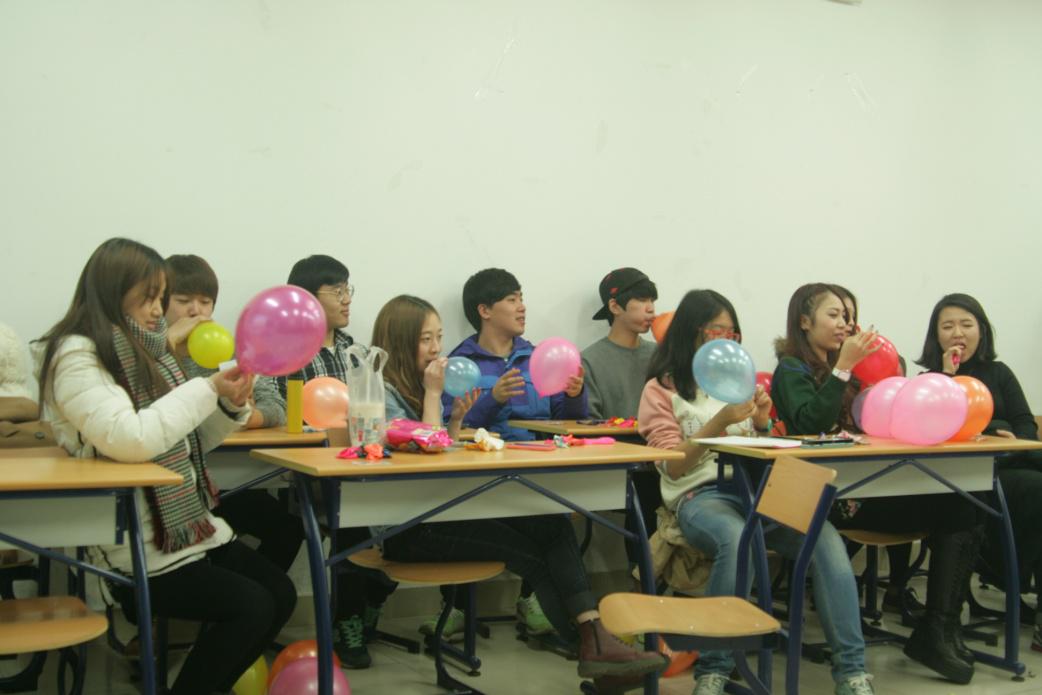 班委根据同学们的报名活动申请了场地,采购了相关物资,并提前对活动场地进行了布置,以方便活动的开展。八点钟,中韩两国同学都已来到举办活动的教室。为让大家尽快熟悉,活动以两国同学的自我介绍开场。韩国同学除了介绍自己,还和在场同学分享了自己在中国的学习与生活经历,讲述了自己与中华文化的特殊缘分;而中国同学介绍到自己的家乡时,也引起了同学们的极大兴趣,一问一答,笑声不断。