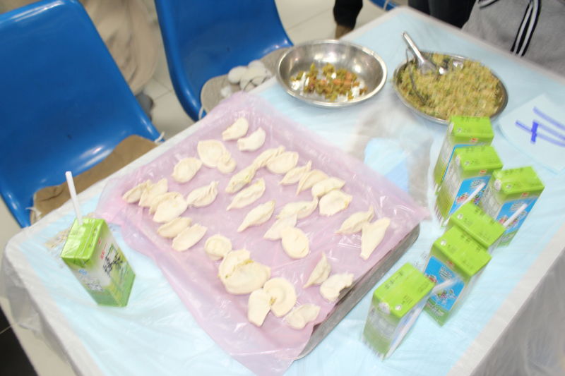 精彩的开场舞之后,包饺子活动正式开始。根据所在的班级,同学们在入场时以八人为一个小组,被分为了19组,老师以及各班辅导员被分在第20组。同学们都充分发挥自己的技能,在本组进行了分工。有的小组八人都是“包饺子达人”,不一会儿一盘饺子就齐整地出现在了托盘里。现场比拼的气氛十分热烈。