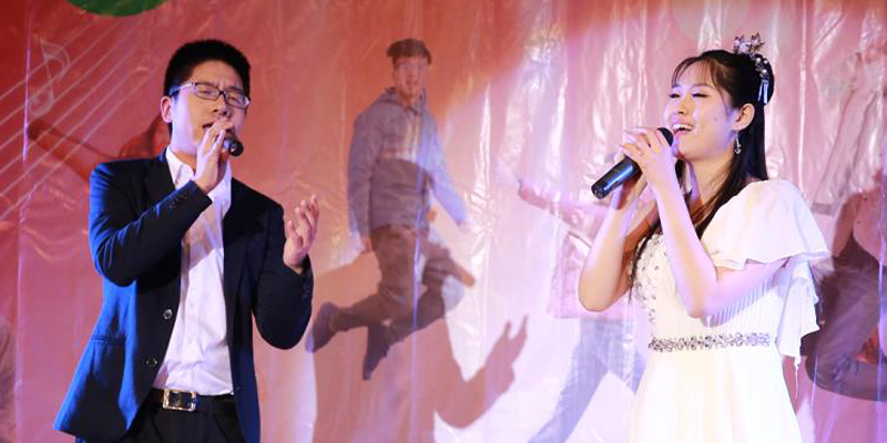老师也登台献声。赵曦老师的京剧《霸王别姬》选段、谢琰老师的《当你老了》、钱翰老师的《月半小夜曲》及孙银新老师日语版的《北国之春》,引爆全场。