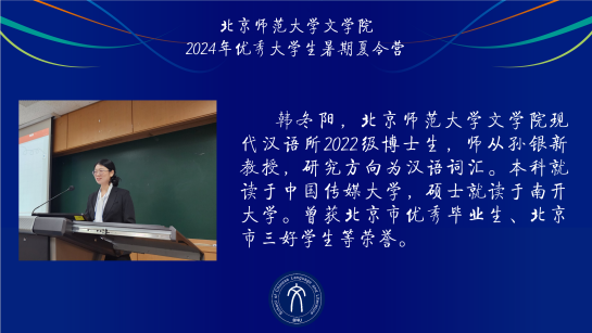 现代汉语研究所孙银新教授、理论语言学研究所许小颖副教授、古代汉语研究所孟琢教授和各位老师代表详细地为参营同学介绍各所发展历程、师资力量、科研成果、国际交流情况以及研究生培养模式。